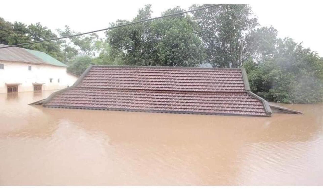 Nước lũ dâng cao tại xã Điện Tiến, thị xã Điện Bàn vào chiều ngày 9/10. Ảnh: N.Phó