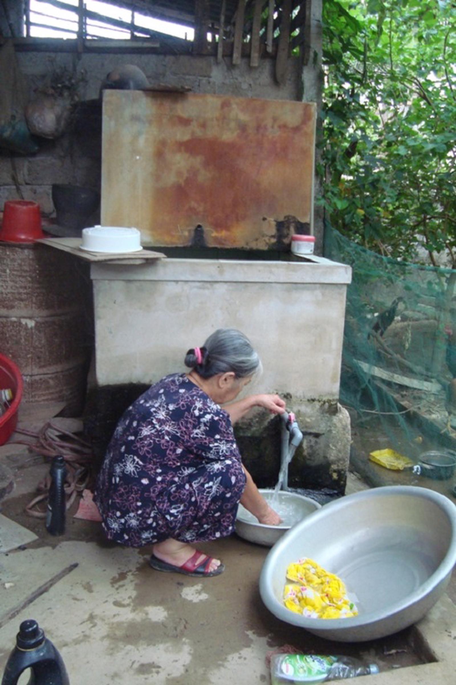 Giếng những hộ dân quanh quán Ngũ Phúc, qua xử lý vẫn còn mùi hôi thối. Ảnh: Hải Thư