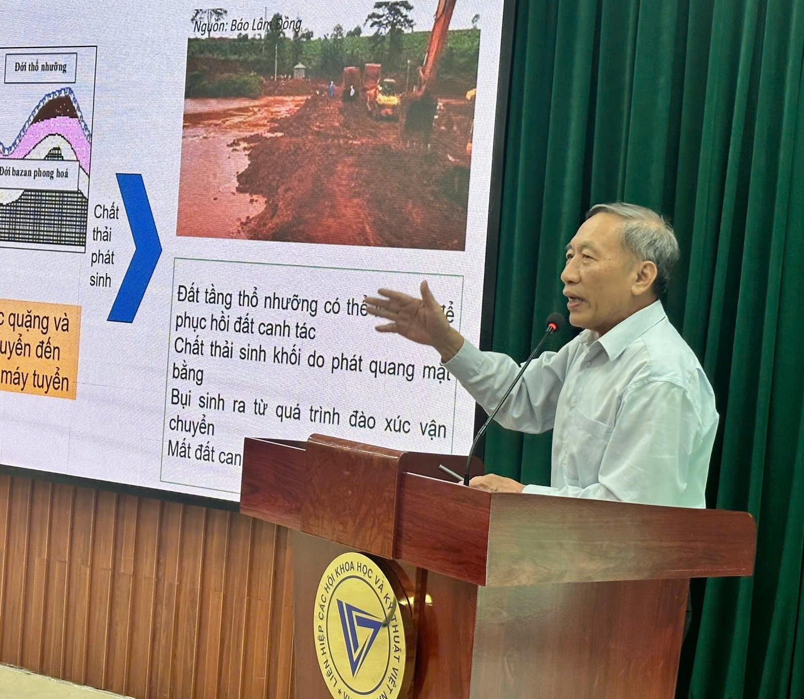 PGS.TS Lưu Đức Hải - Chủ tịch Hội Kinh tế Môi trường Việt Nam trình bày tham luận tại một hội thảo. Ảnh: NVCC