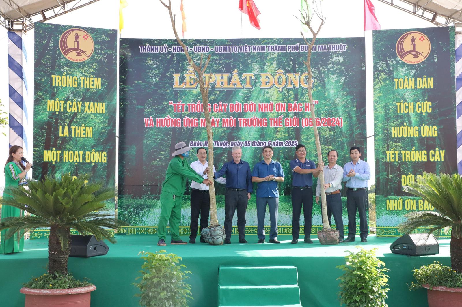 Nhân dịp này, lãnh đạo tỉnh Đắk Lắk và các đại biểu tham gia trồng cây tại nút giao đường Trần Quý Cáp và đường Đông Tây, thuộc phường Tự An, TP Buôn Ma Thuột. Tổng số cây được trồng là 170 cây bằng lăng do Công ty TNHH MTV Xuất Nhập khẩu 2/9 Đắk Lắk và Công ty Dakman đồng hành và tài trợ.