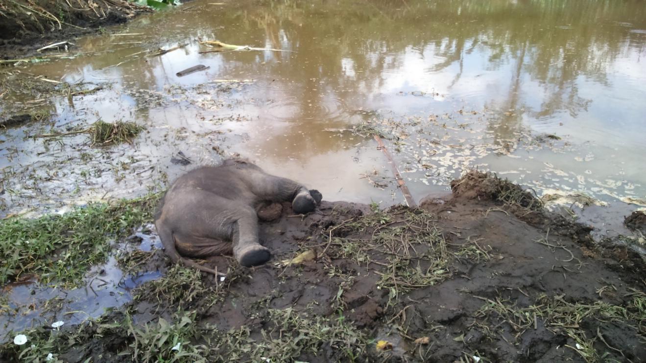 Voi rừng khoảng 1 năm tuổi chết bên bờ suối. Ảnh: QA