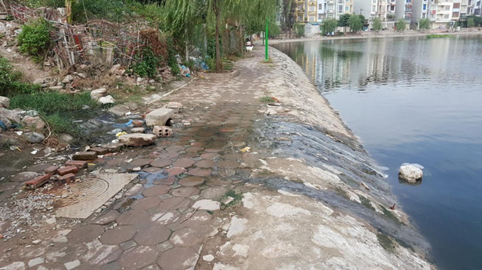 Tại một số ngõ thông ra khu vực hồ, rác cũng được vứt tràn lan trên đường đi gây ảnh hưởng tới việc đi lại cũng như mất vệ sinh, mất mỹ quan khu vực.