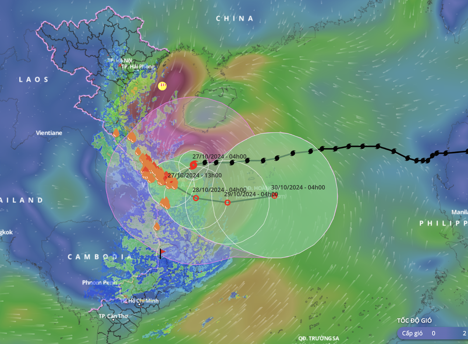 Dự báo trưa ngày 27/10, bão số 6 sẽ đi vào đất liền khu vực Nam Quảng Trị-Đà Nẵng, vùng gần tập bão có gió mạnh cấp 8-9, giật cấp 11. Ven biển Quảng Trị, Thừa Thiên Huế, Đà Nẵng có gió mạnh cấp 8-9, giật cấp 10-11; sâu hơn trong đất liền có thể có gió mạnh cấp 6-7, giật cấp 8-9. Thời gian nguy hiểm nhất của gió mạnh là từ sáng 27/10 đến chiều 27/10.