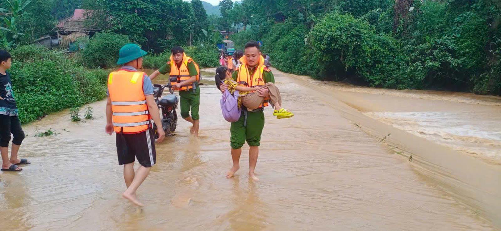 Lực lượng Công an tỉnh Phú Thọ trợ giúp người dân vùng ngập úng. Ảnh: ND