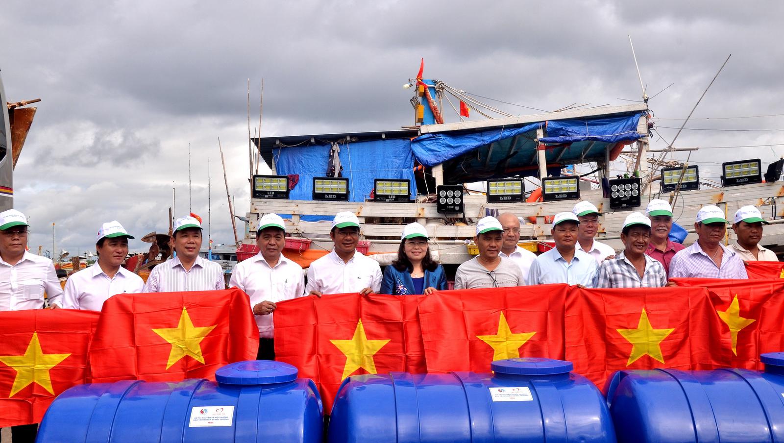 BTC trao tặng 300 bồn chứa nước ngọt chuyên dùng với dung tích 1.000 lít và 3.000 lá cờ Tổ quốc cho ngư dân tỉnh BR-VT