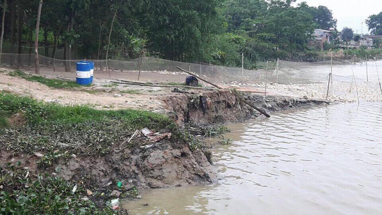 Sạt lở đất nghiêm trọng có nguy cơ nước sông tràn vào khu vực đất đai của người dân