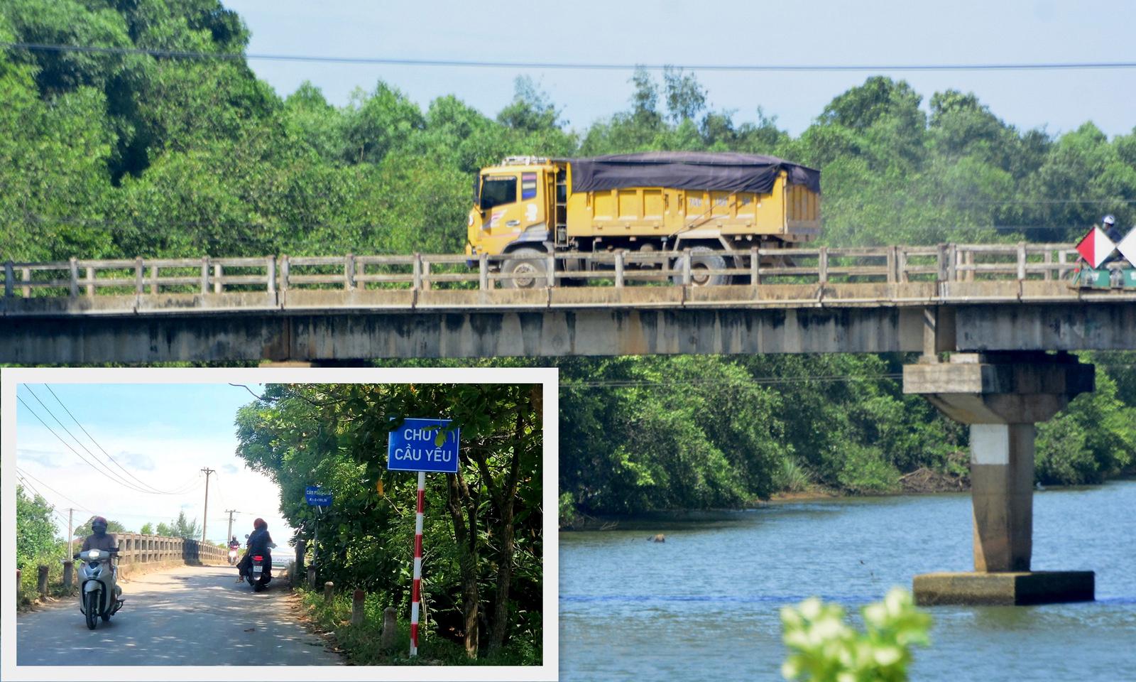 Xe chở đất từ mỏ đất Vĩnh Thủy bất chấp lưu thông qua cây cầu Phúc Lâm, xã Vĩnh Thủy dù cây cầu đã yếu và đông đúc phương tiện, người dân qua lại. Ảnh: Khánh Anh