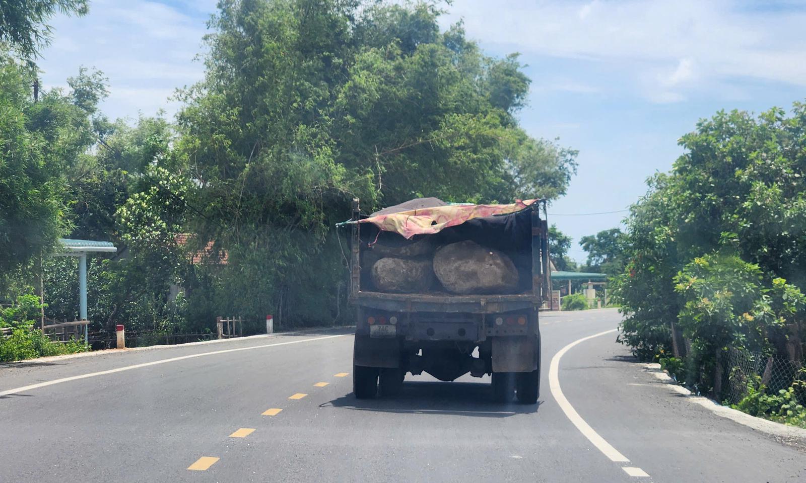 Xe chở đá không hề che chắn, gia cố đảm bảo an toàn lưu thông trên tuyến đường qua địa bàn xã Bến Hải, tỉnh Quảng Trị. Ảnh: Khánh Anh