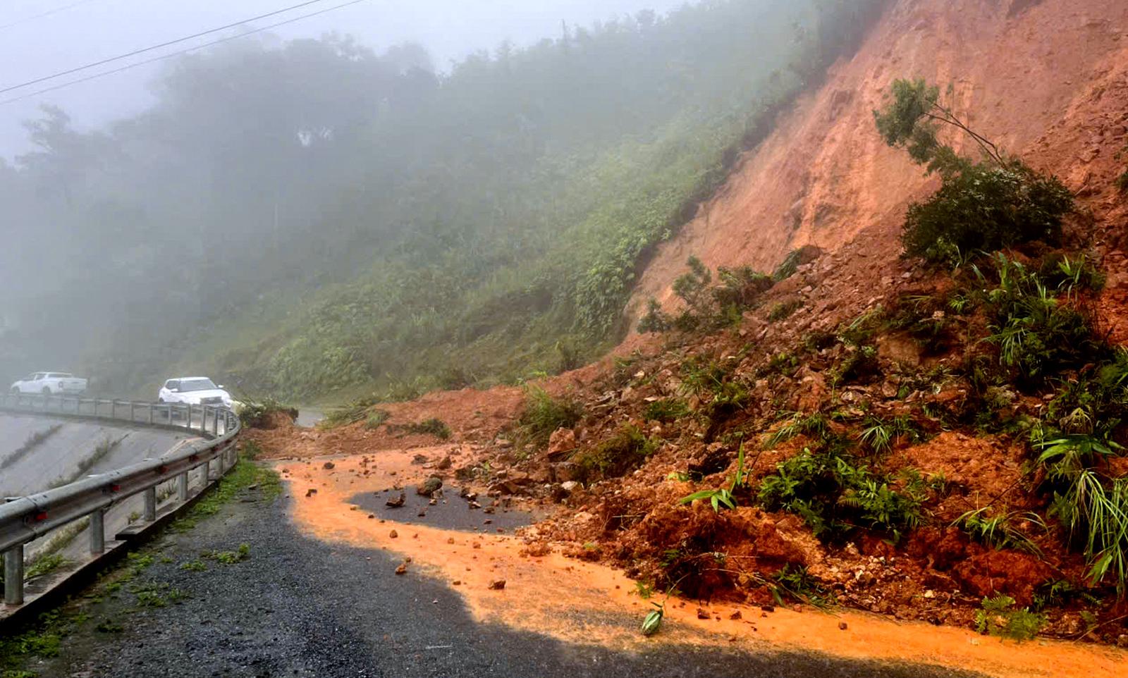 Ngay sau khi nhận được thông tin, Đồn Biên phòng Hướng Lập phối hợp cùng các lực lượng và chính quyền địa phương tổ chức tuyên truyền, lập chốt chặn cảnh báo người dân không di chuyển lên khu vực đèo Sa Mù đang bị sạt lở. Ảnh: Minh Tân