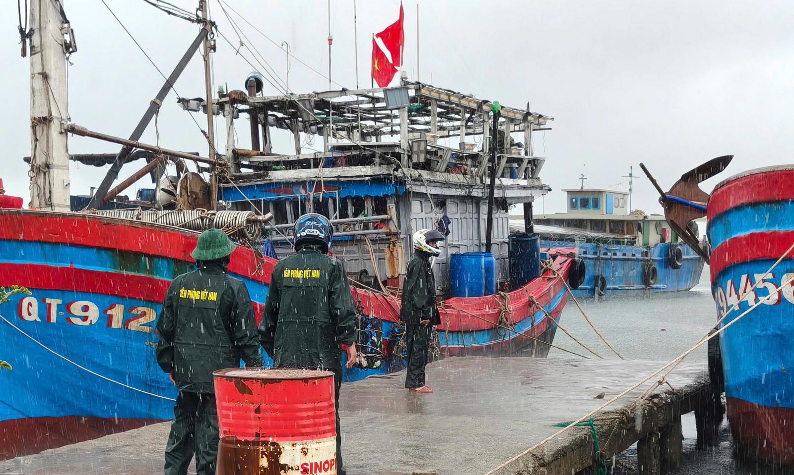 Đồn Biên phòng Cửa Việt cùng các đơn vị kiểm tra công tác neo đậu tàu thuyền. Ảnh: Minh Tân