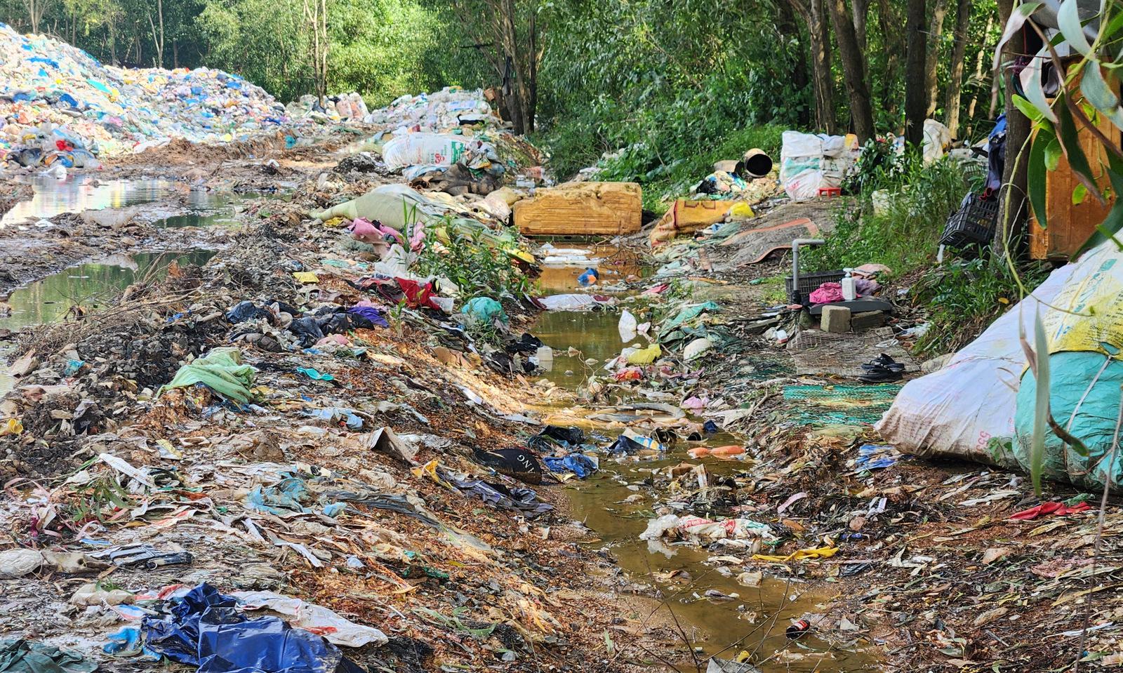 Rác "tràn" từ bãi rác đến các khu vực lân cận. Ảnh: Khánh Anh