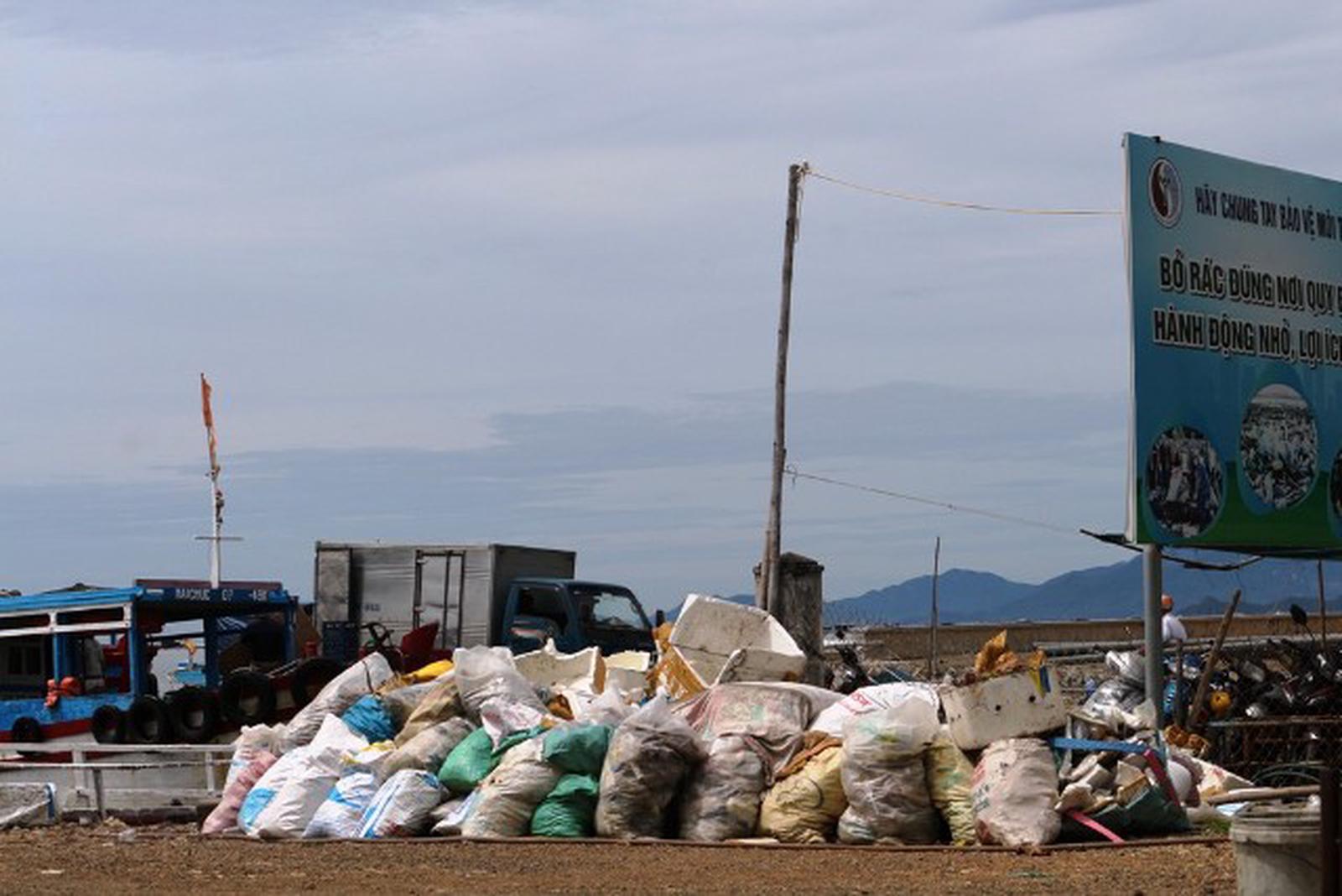 Thu gop rác ngoài đảo Điệp Sơn, chuyển vào đất liền xử lý. Ảnh: Thanh Hòa