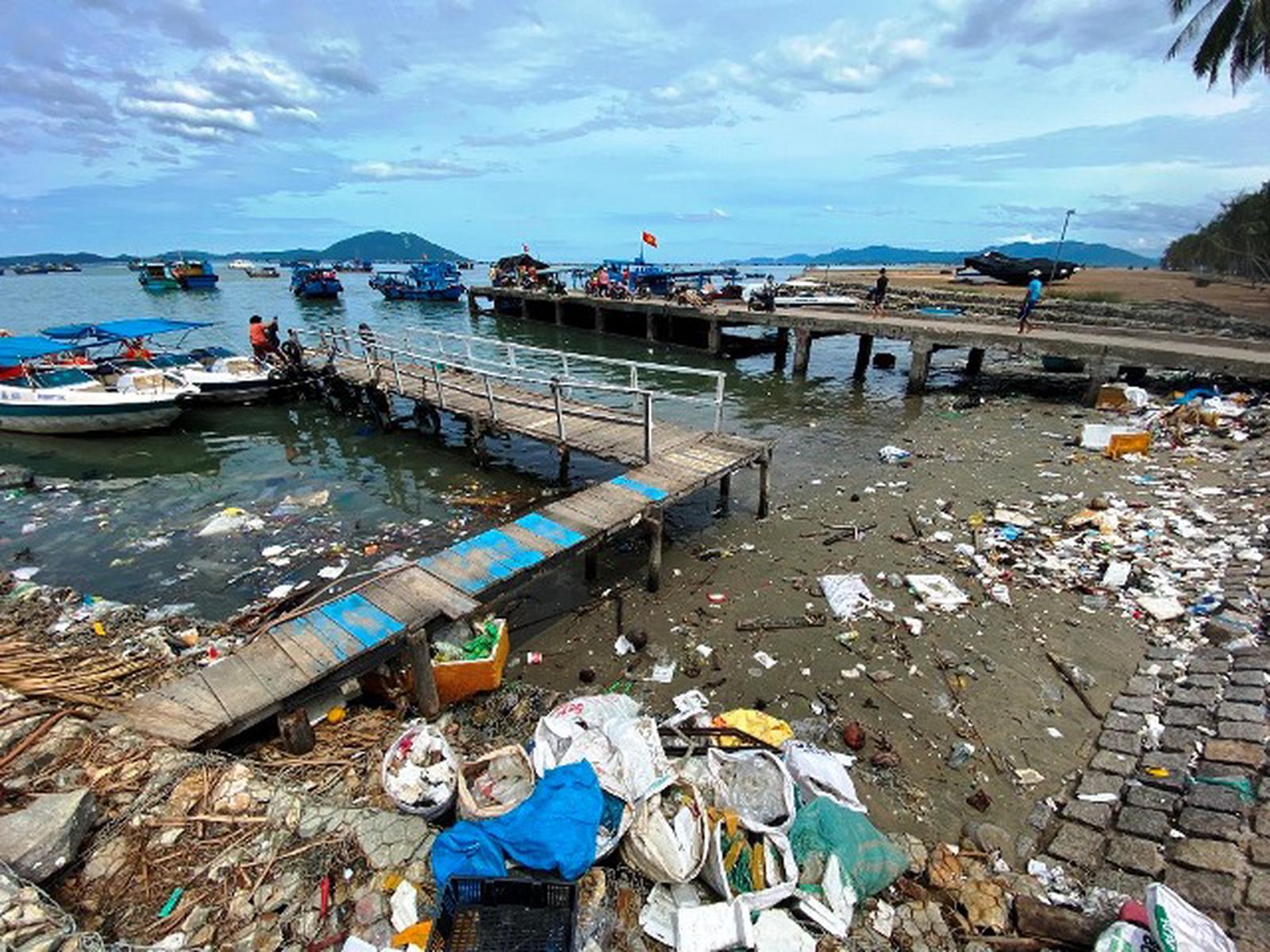 Đến đảo Điệp Sơn những ngày này, chúng tôi chứng kiến tình trạng rác thải tràn lan, dày đặc ở các cầu cảng, khu dân cư, mặt biển và điểm du lịch. Tại cầu cảng Vạn Giã (điểm đón khách ra đảo Điệp Sơn) rác thải xuất hiện khắp mặt biển và khu vực neo đậu tàu thuyền. Nhiều điểm trên mặt nước biển, rác đã phân hủy và bốc mùi hôi nồng nặc, mỗi đợt tàu du lịch cập vào bờ sóng lại đẩy rất nhiều rác tràn lên bãi cát.