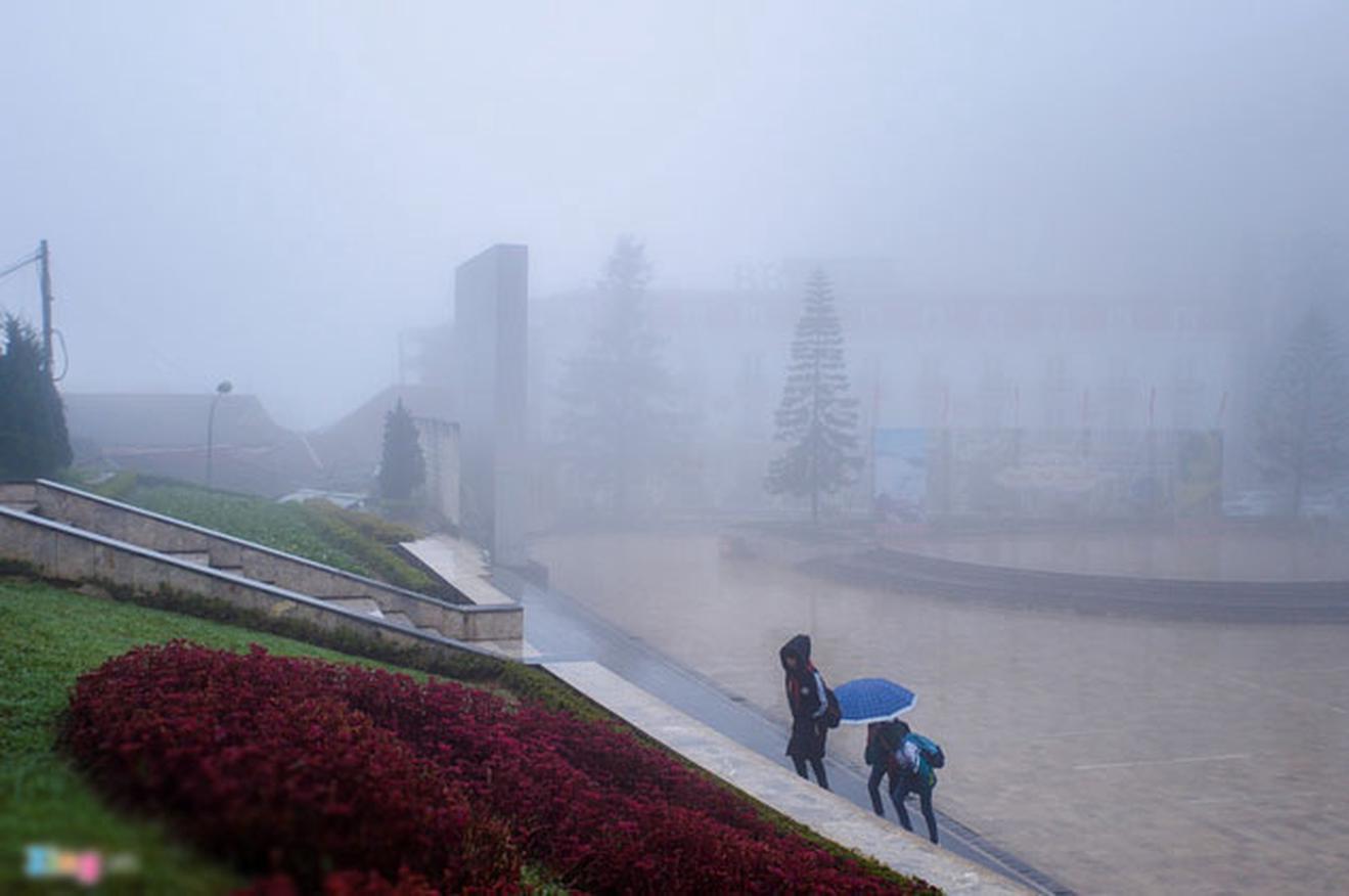 Quảng trường Sa Pa (Lào Cai) vắng lặng trong cái lạnh 3,7 độ C, trưa 9/1. Xung quanh sương mù bao phủ toàn thị trấn cả ngày.