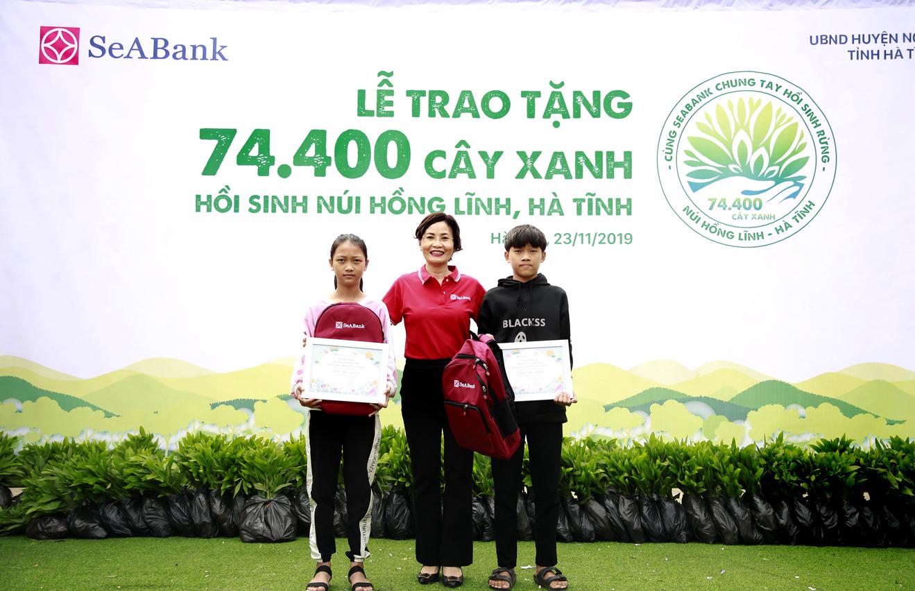 Cuối tháng 6, đầu tháng 7/2019, tại Hà Tĩnh đã xảy ra cháy rừng với quy mô lớn nhất từ trước đến nay, gây thiệt hại lớn về rừng, môi trường, ảnh hưởng nghiêm trọng đến tính mạng, đời sống của người dân. Với mong muốn chia sẻ khó khăn với các hộ dân bị thiệt hại trong thảm họa cháy rừng, đồng thời chung tay hồi sinh rừng, SeABank đã quyết định trao tặng 74.400 cây xanh cho 47 hộ dân thuộc khu vực núi Hồng Lĩnh, xã Xuân Hồng, huyện Nghi Xuân, tỉnh Hà Tĩnh, trong đó có 62.600 cây tràm và 11.800 cây bạch đàn.