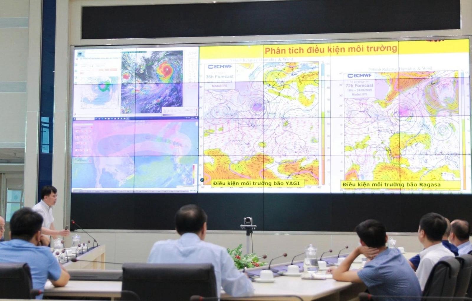 Cục Khí tượng Thủy văn họp nhận định dự báo bão chiều 22/9. Ảnh: Trung Nguyên.