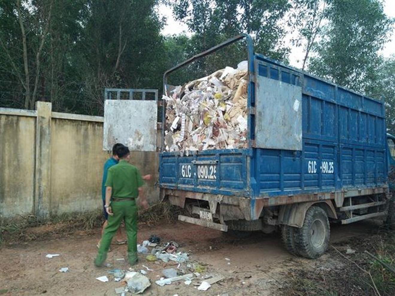 Làm việc với công an, tài xế Lưu Văn Thắng (điều khiển xe tải biển kiểm soát 60P1-1524), tài xế Thạch Thông (điều khiển xe tải biển kiểm soát 61C-356.82) và hai phụ xe (đều ngụ tỉnh Bình Dương) khai nhận đã lấy rác từ các công ty ở thị xã Tân Uyên, tỉnh Bình Dương, mang đến khu vực này đổ trộm.