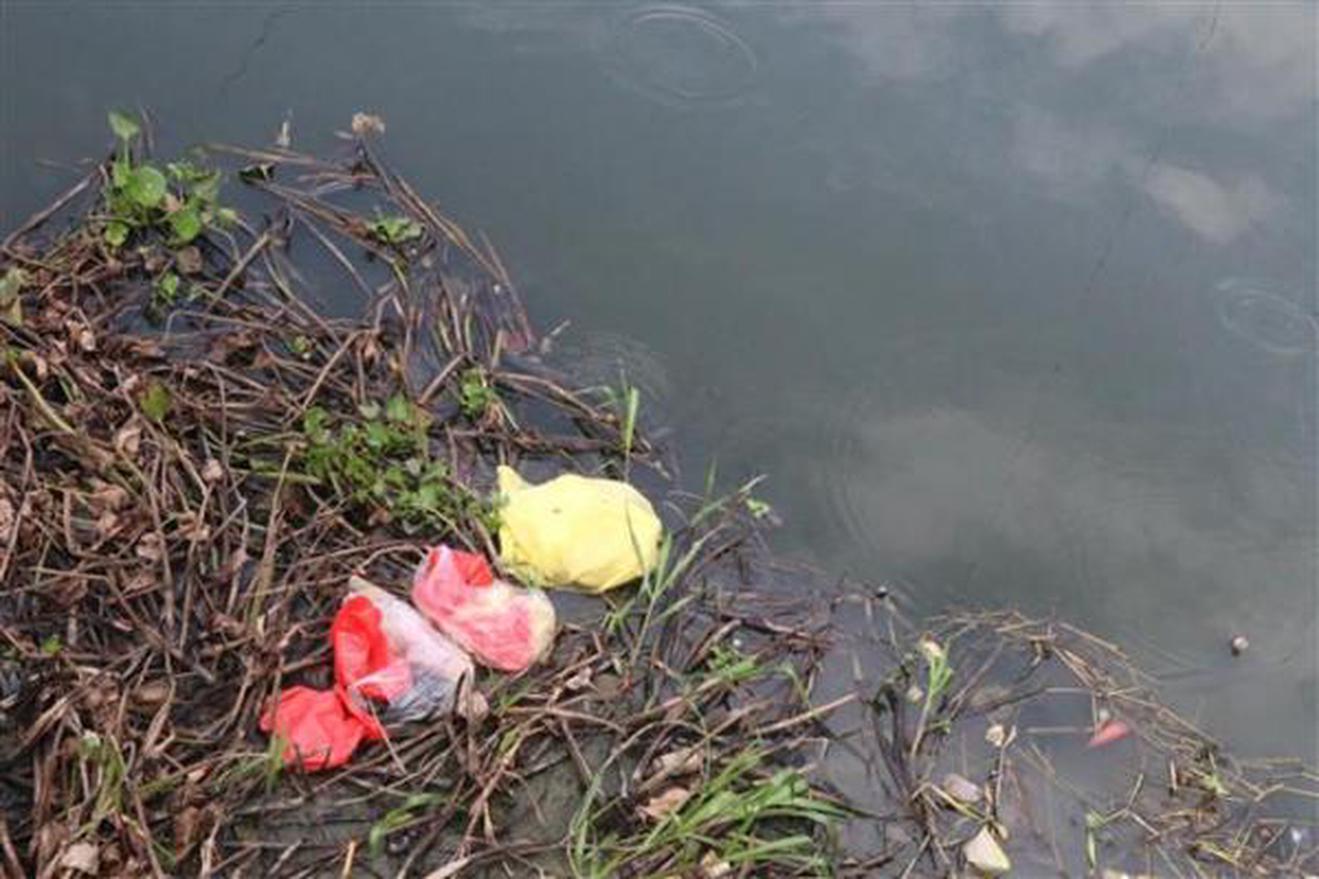Rác thải vứt bừa bãi trên kênh rạch ở xã Hậu Mỹ Bắc B, huyện Cái Bè. Ảnh: Minh Trí