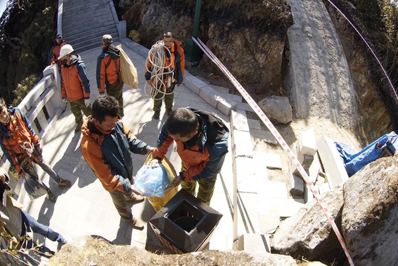 Ngoài các tổ “đu dây”, lãnh đạo Ban quản lý tuyến cáp treo Fansipan Sapa còn sắp xếp thêm hàng trăm thùng đựng rác dọc đường lên đỉnh Fansipan, cử nhân viên liên tục hướng dẫn, nhắc nhở du khách bỏ rác đúng nơi quy định...
