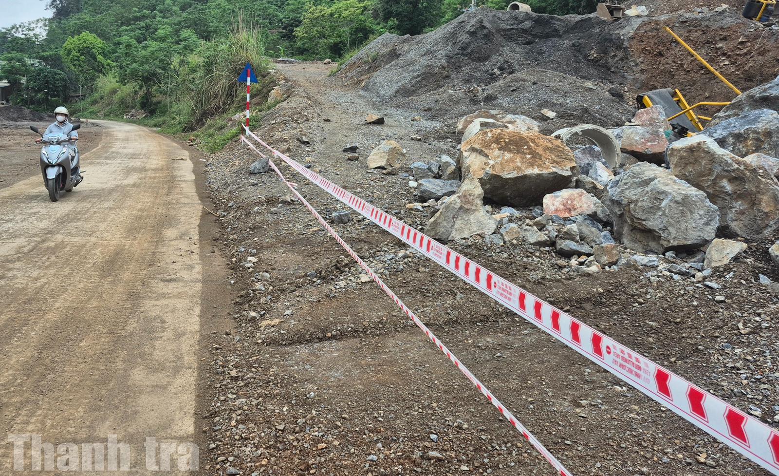 Ngày 24/4, có mặt tại hiện trường vụ sạt lở, phóng viên ghi nhận khối lượng đất đá sạt lở cùng hệ thống máy móc, thiết bị đã được ngăn cách với đường dân sinh bằng hệ thống cọc tiêu, dây, biển cảnh báo.