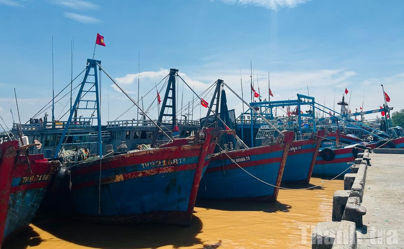 Tàu thuyền tại Cảng Hới, tỉnh Thanh Hóa đã về đến nơi an toàn trước khi bão đổ bộ. Ảnh: Hương Trà