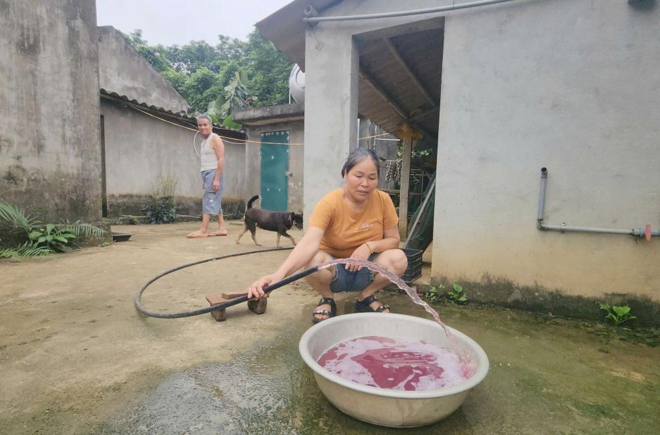 Nước giếng khoan đổi màu ở các nhà dân gần nhà máy may xuất khẩu Thạch Tượng. Ảnh: Quách Du
