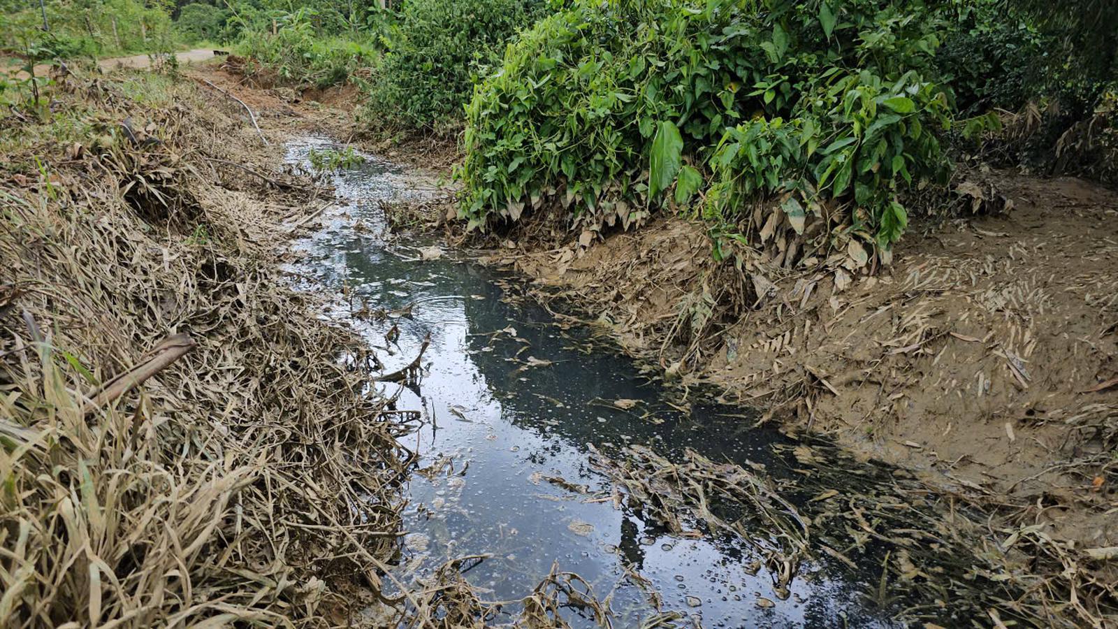 Theo ghi nhận thực tế tại thôn Tân Cúc, xã Thanh Quân, dọc tuyến đường liên thôn - huyết mạch giao thông của khu vực, nước đọng tại các rãnh thoát đều có màu đen và bốc mùi khó chịu. Tại khu vực trồng cây bên cạnh suối Khe Măng, nhiều vũng nước đen vẫn còn tồn đọng lại và cách đó khoảng 20m là nơi sinh sống của nhiều hộ dân.