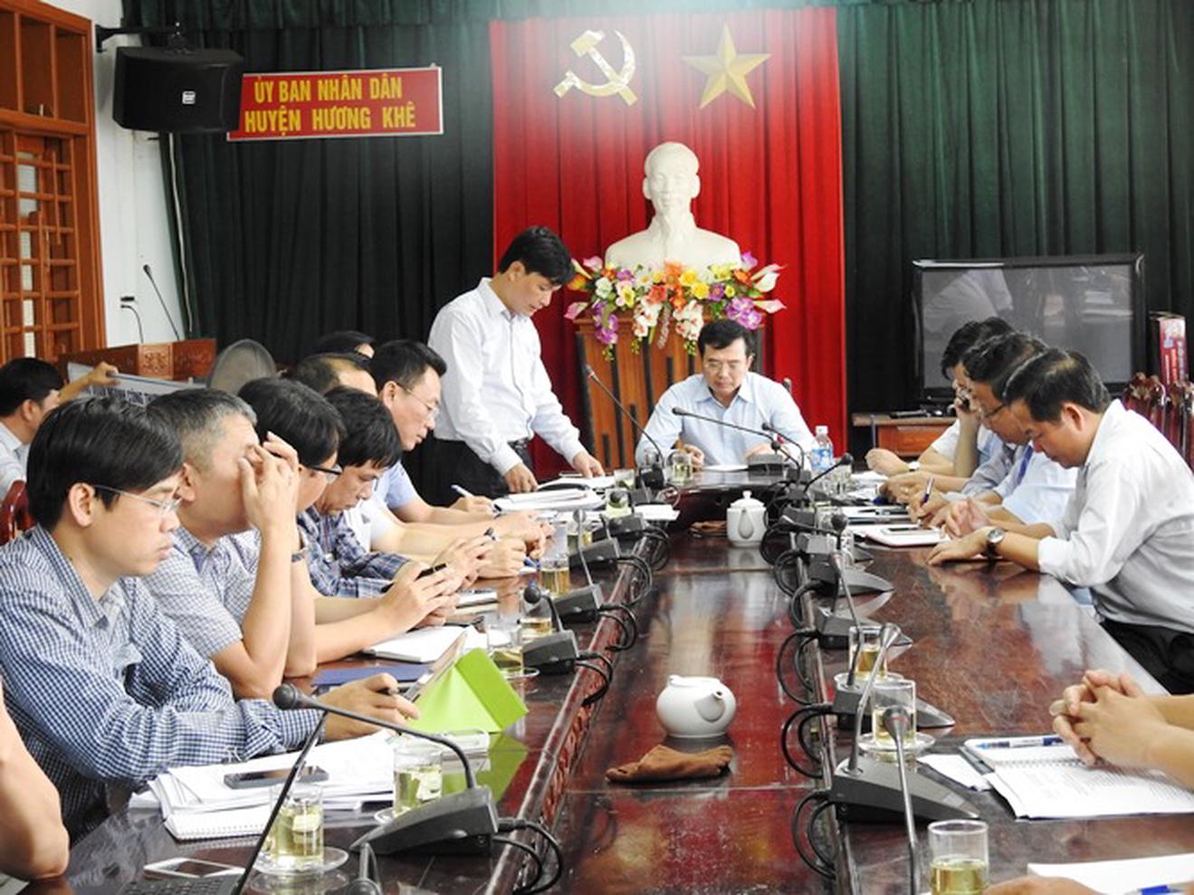 Đoàn Công tác làm việc với UBND huyện Hương Khê chiều 18/10. Ảnh: Hải Yến