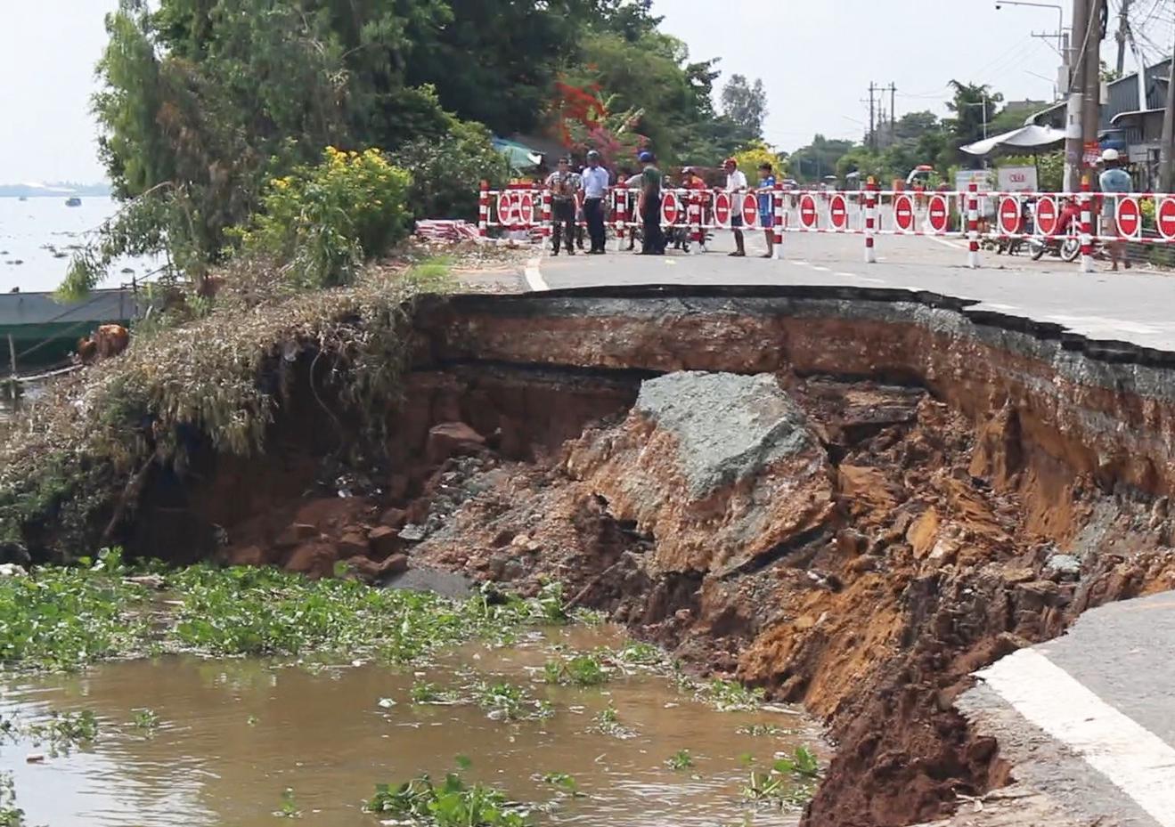 Sạt lở đã xảy ra ở 13 tỉnh, thành phố khu vực ĐBSCL, ảnh hưởng nghiêm trọng đến đời sống người dân. Ảnh: NH