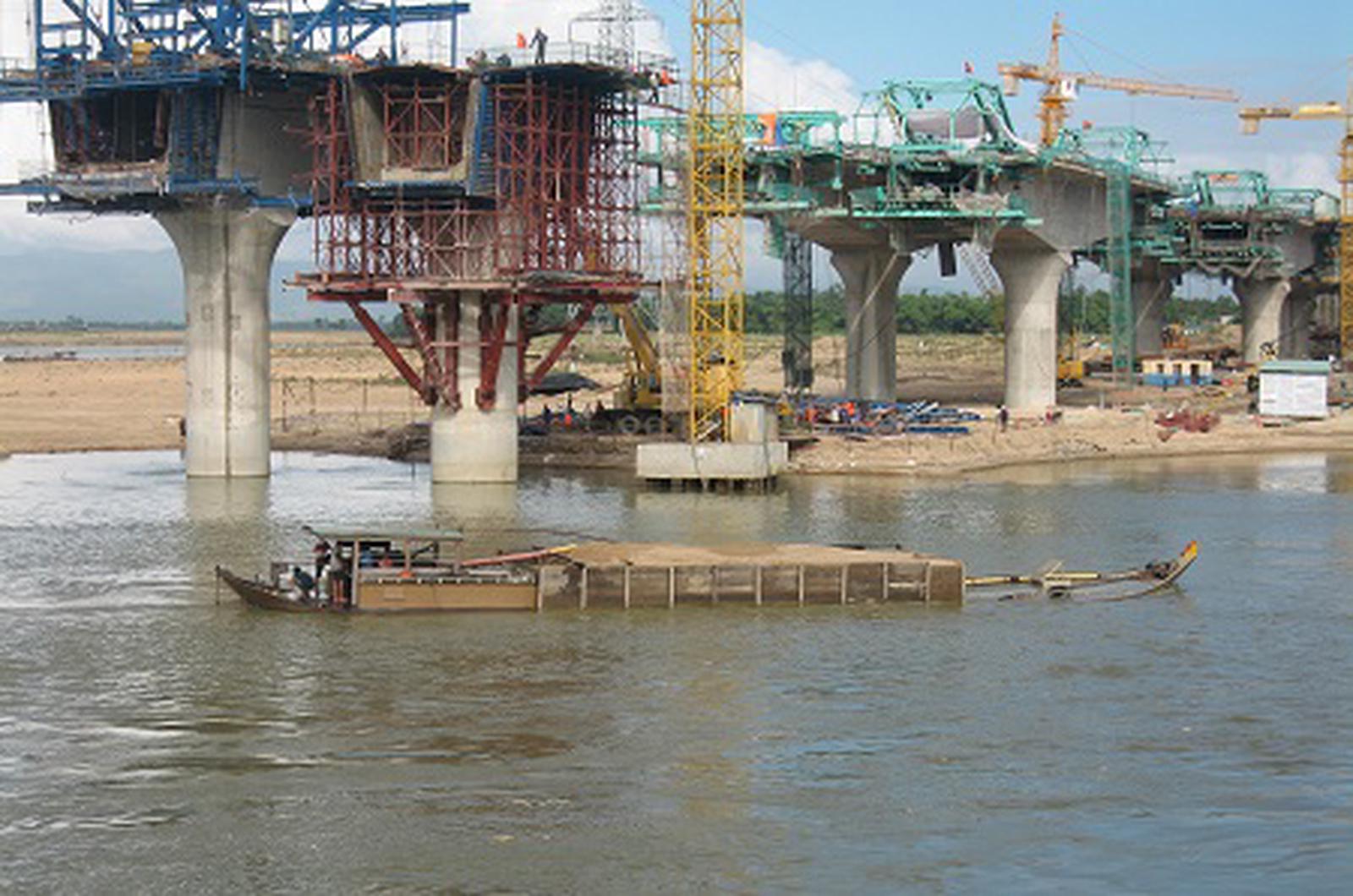 Tàu hút cát tại cầu Kỳ Lam (Điện Thọ). Ảnh: Ngọc Phó