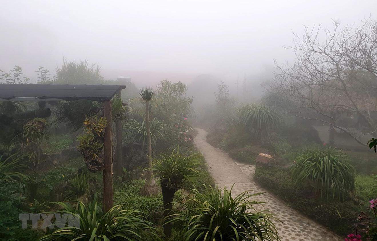 Sương mù dày đặc tại thị trấn Sapa. (Ảnh: Quốc Khánh/TTXVN)