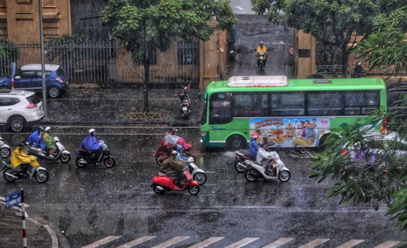 Mưa giông tại khu vực nội thành Hà Nội. (Ảnh: Thành Đạt/TTXVN)