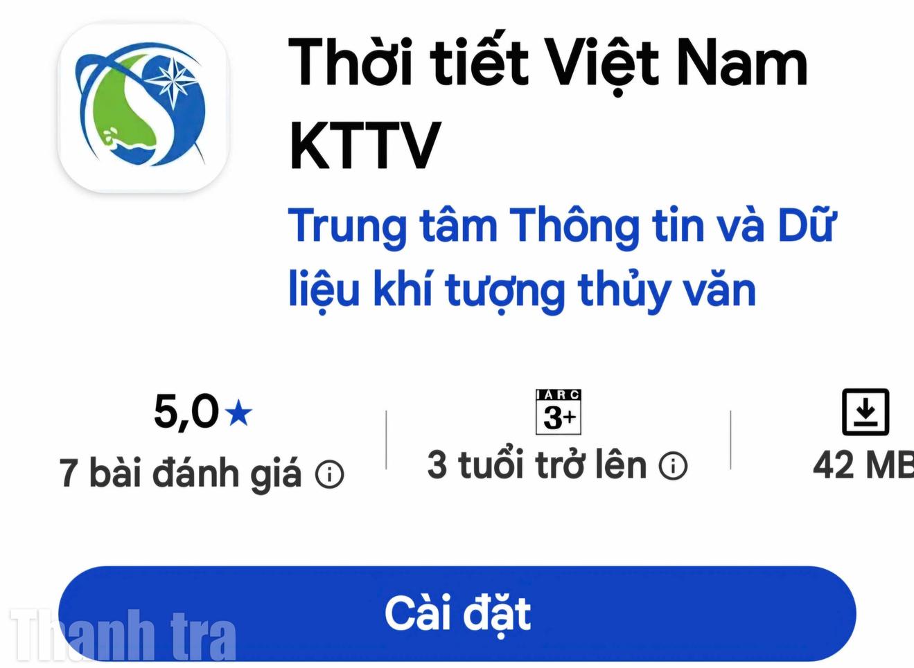 Ứng dụng Thời tiết Việt Nam KTTV trên nền tảng Android, hoàn toàn miễn phí. Ảnh: TM