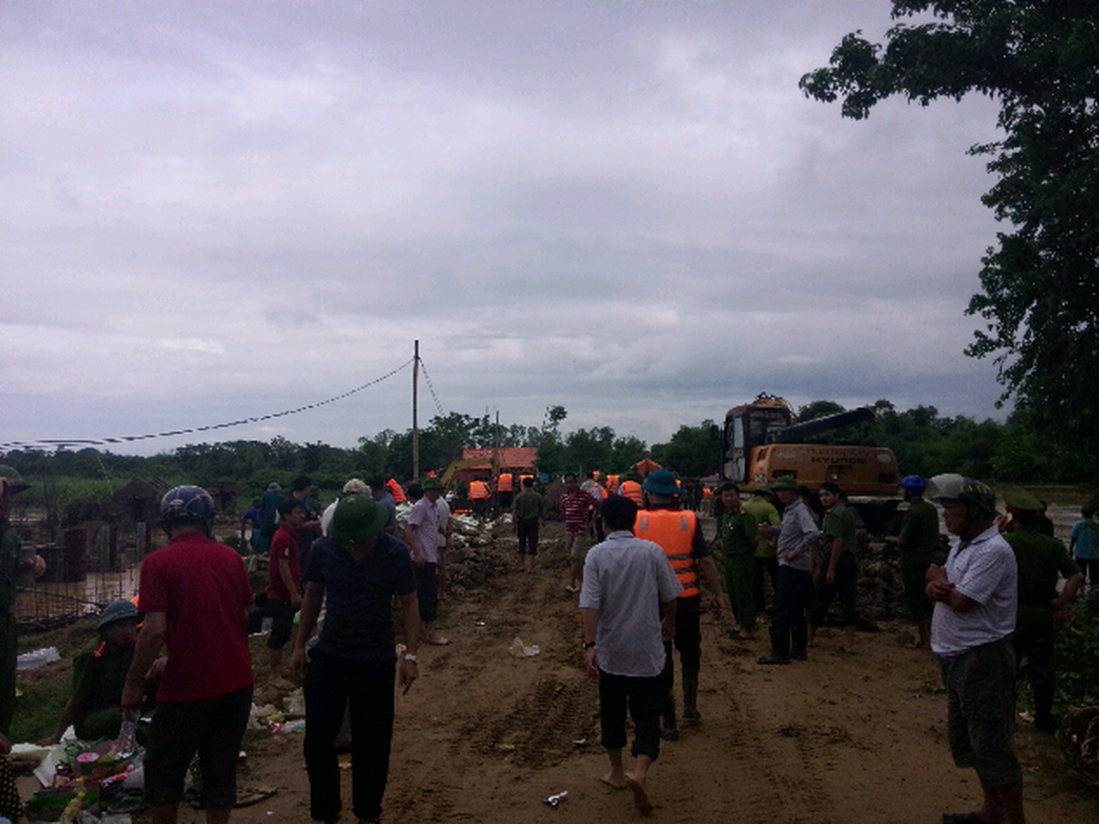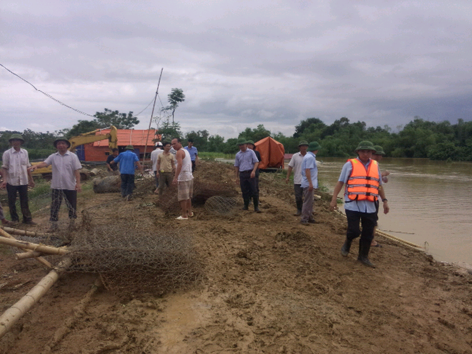 Ngay sau khi phát hiện, huyện đã chỉ đạo xử lý chống sạt xong lúc 14h ngày 10/10/2017 và tiếp tục thả rọ đá hộ chân đê với khối lượng 80 rọ, 15m3 đá hộc.