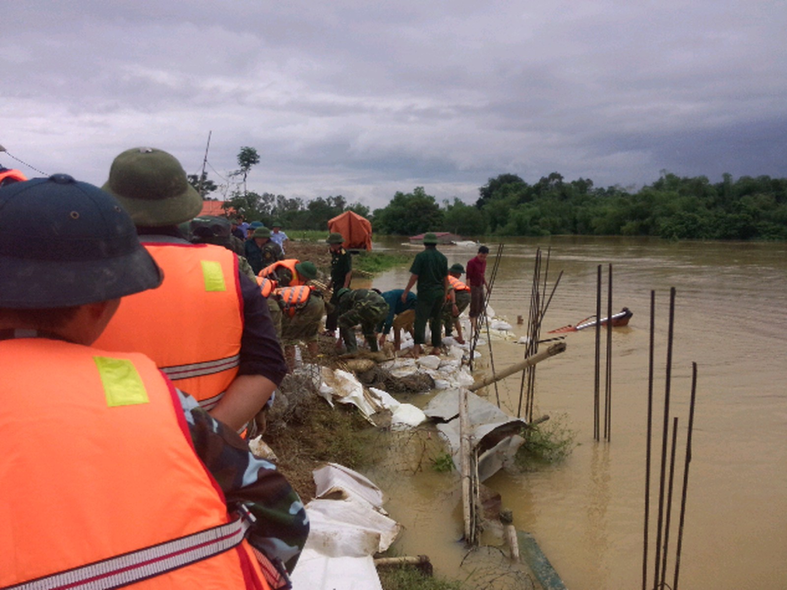 (Thanh tra) - Rạng sáng ngày 12/10, tại tuyến đê sông Cầu Chày, thuộc địa bàn xã Xuân Minh, huyện Thọ Xuân, tỉnh Thanh Hóa đã bất ngờ rạn nứt và vỡ. Hàng trăm cán bộ chiến sỹ bộ đội, dân quân tự vệ, lãnh đạo địa phương đã nhanh chóng có mặt, huy động phương tiện máy móc, trang thiết bị kịp thời nỗ lực hàn gắn, khống chế đoạn đê vỡ này.