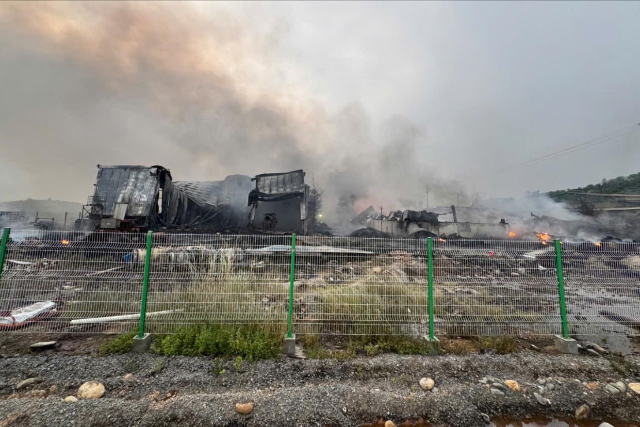 Vụ cháy đã thiêu rụi gần 2.900m² kho nguyên liệu, 645m² khu xưởng sản xuất và khoảng 2.000 tấn dung dịch thủy tinh hữu cơ MMA. Ảnh: BB
