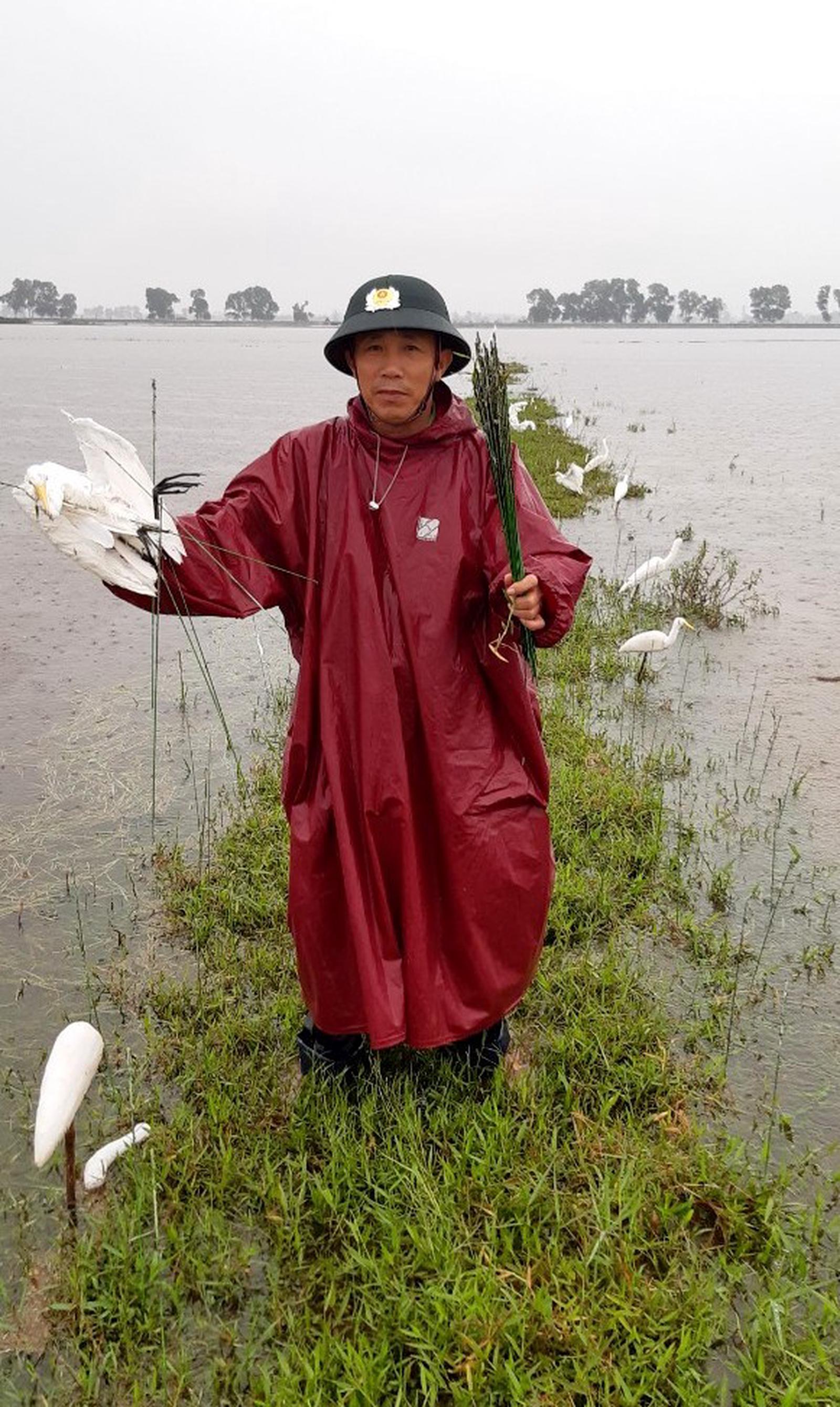 “Mỗi ngày, cũng kiếm được vài ba trăm nghìn, có hôm cả tiền triệu. Dù biết vi phạm nhưng đây là nghề truyền thống lâu nay của bà con nơi đây, khi mà mùa nước lũ không biết làm gì để có tiền cả”, một người dân đang găm những con cò giả để đặt bẫy ở cánh đồng xã Hải Dương, huyện Hải Lăng, biện minh.