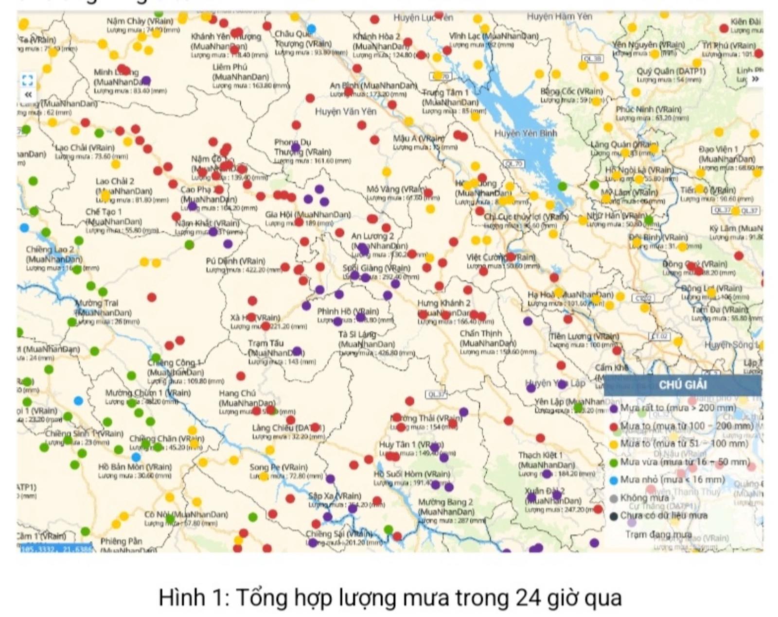 Theo Trung tâm Dự báo khí tượng Thủy văn Quốc gia, trong 24 giờ qua, do ảnh hưởng mưa bão số 3 tại Yên Bái đã có mưa rất to, tổng lượng mưa đo được phổ biến từ 100-250mm, đặc biệt có nơi trên 400mm (huyện Trạm Tấu, huyện Văn Chấn).