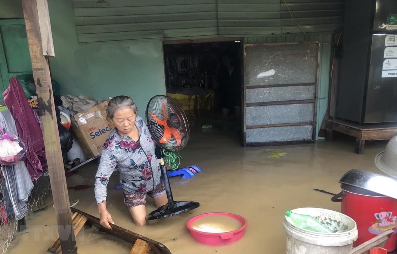 Nhiều hộ dân phường Nhơn Phú, thành phố Quy Nhơn bị ngập sâu. (Ảnh: Nguyên Linh/TTXVN)