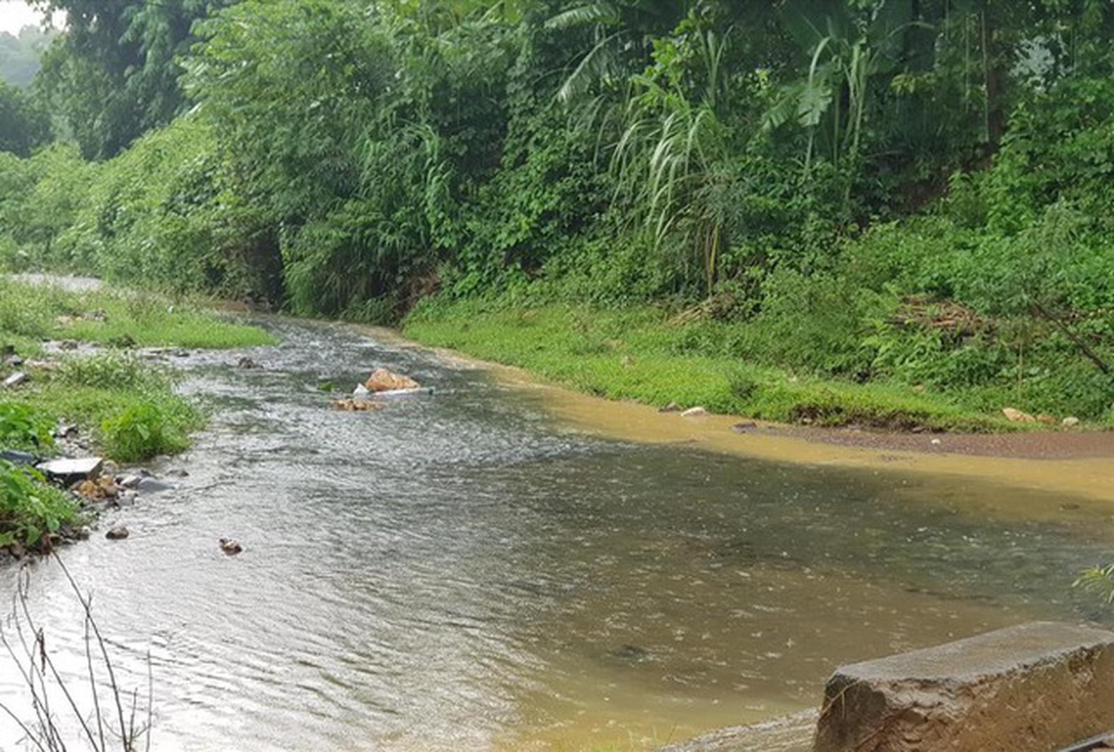 Váng dầu từ khe núi chảy vào suối và lan tới kênh dẫn nước của Nhà máy Nước sạch Sông Đà tại Hoà Bình.