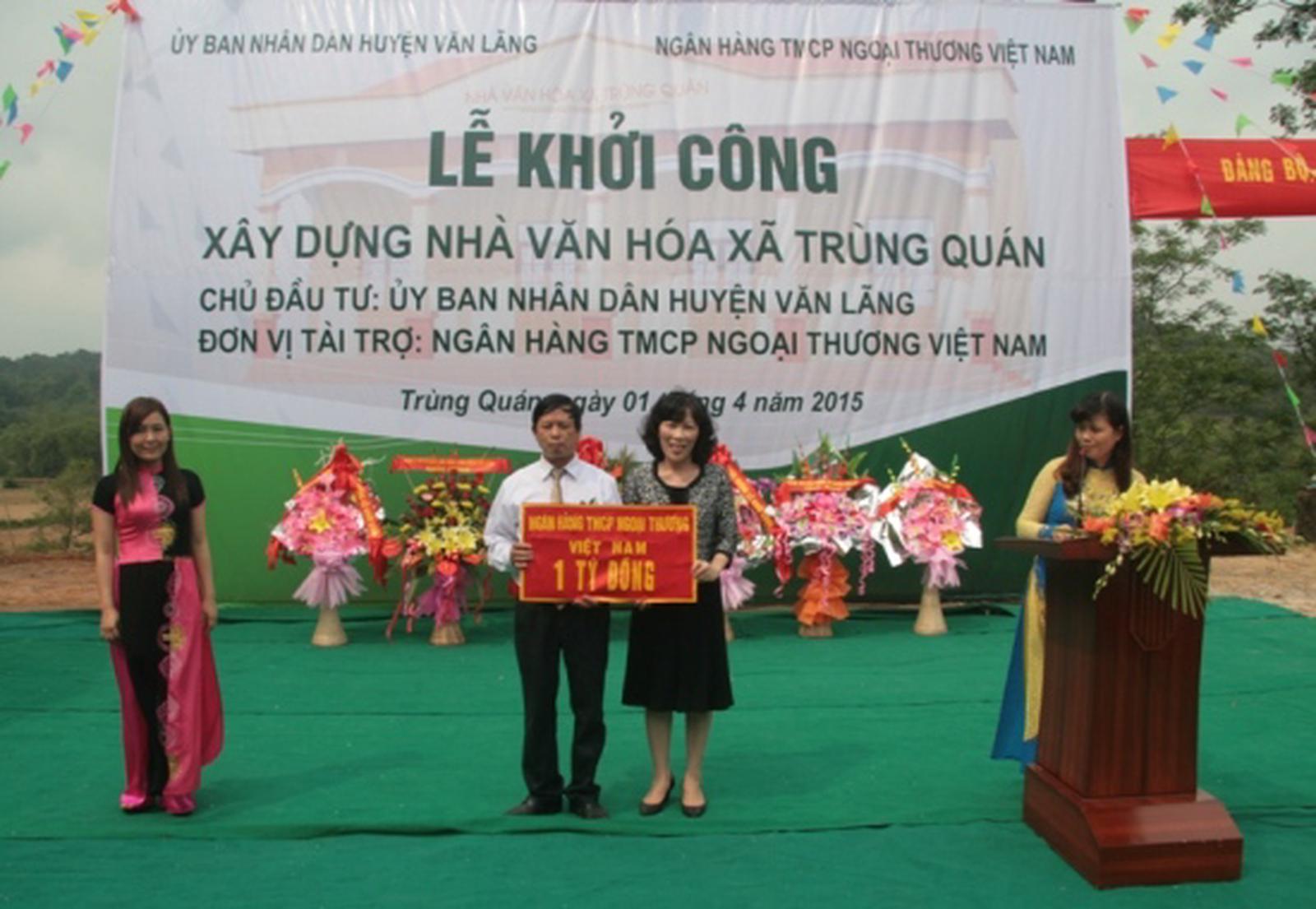 Ngày 1/4/2015, tại tỉnh Lạng Sơn, Ngân hàng TMCP Ngoại thương Việt Nam (Vietcombank) và Ủy ban Nhân dân huyện Văn Lãng đã tổ chức lễ Khởi công xây dựng Nhà văn hóa trị giá 1 tỷ đồng cho xã Trùng Quán huyện Văn Lãng, tỉnh Lạng Sơn.
