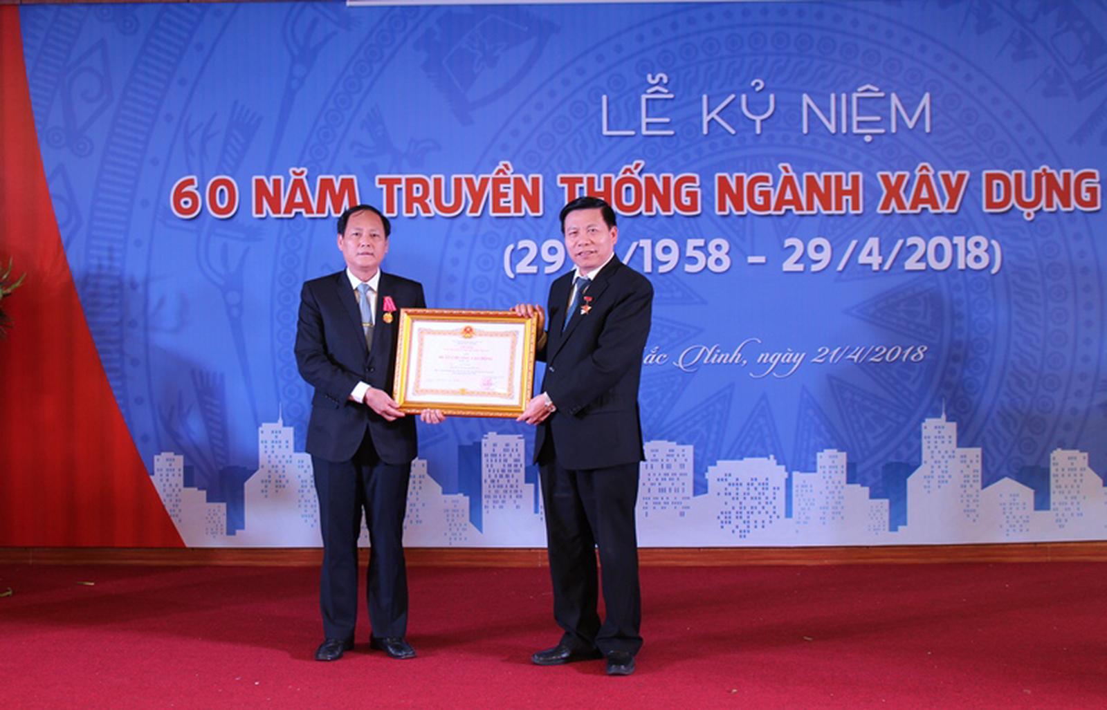 Ông Cao Văn Hà - Giám đốc Sở Xây dựng Bắc Ninh (trái ảnh) vinh dự nhận Huân chương Lao động hạng Ba. Ảnh: HH