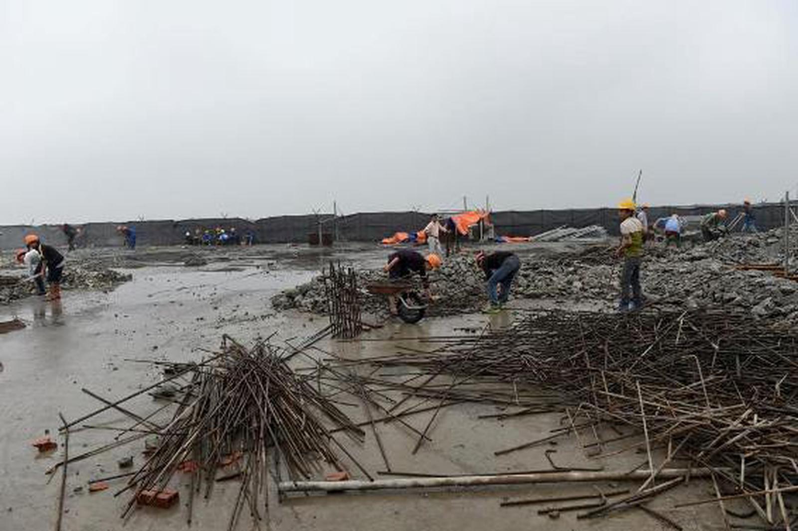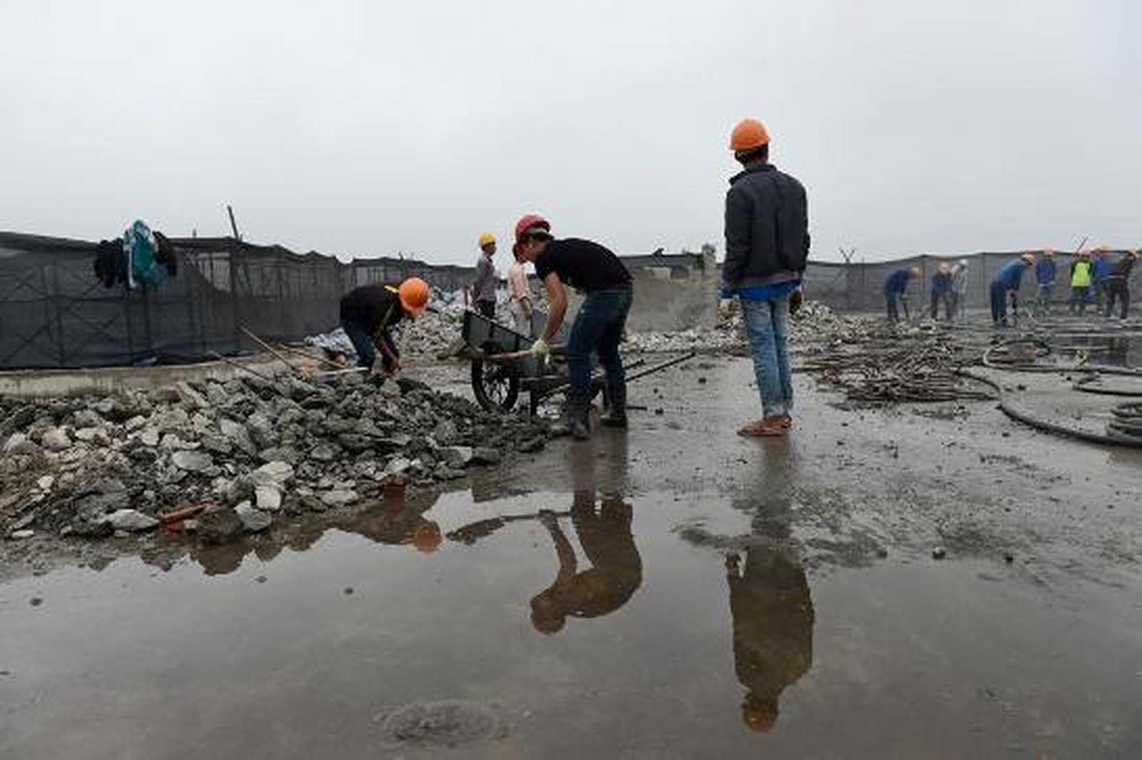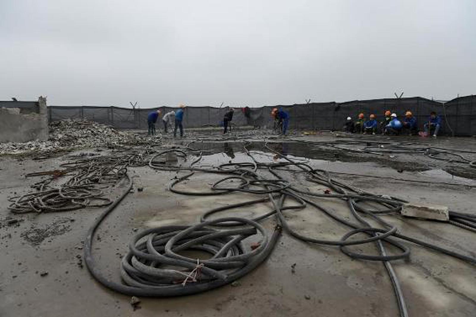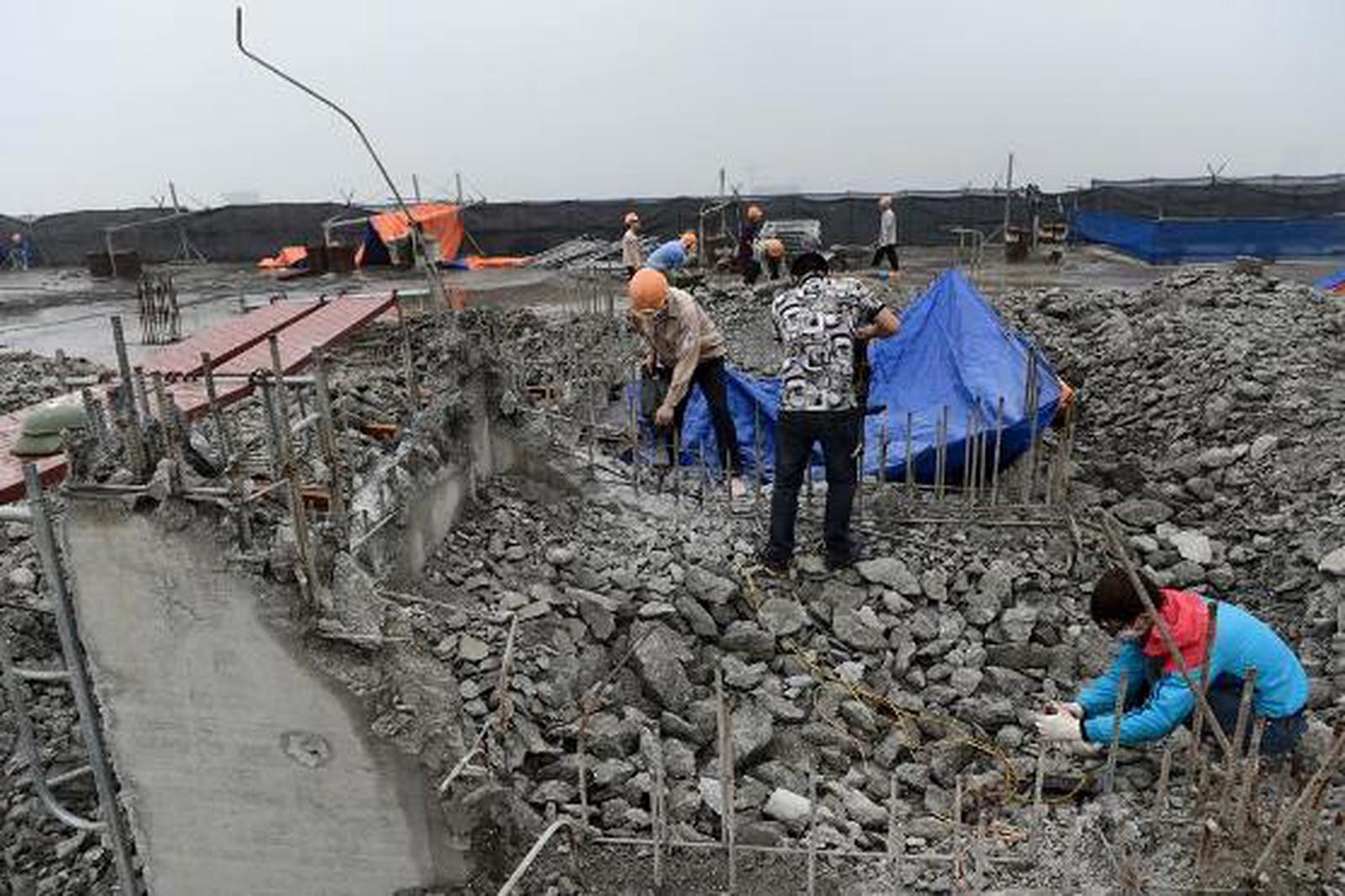 Tại hiện trường trong sáng ngày 6/3, có khoảng 30 công nhân, cùng nhiều máy nén khí, khoan phá bê tông đã tham gia cưỡng chế tháo dỡ phần mái tầng 19 tòa nhà này.