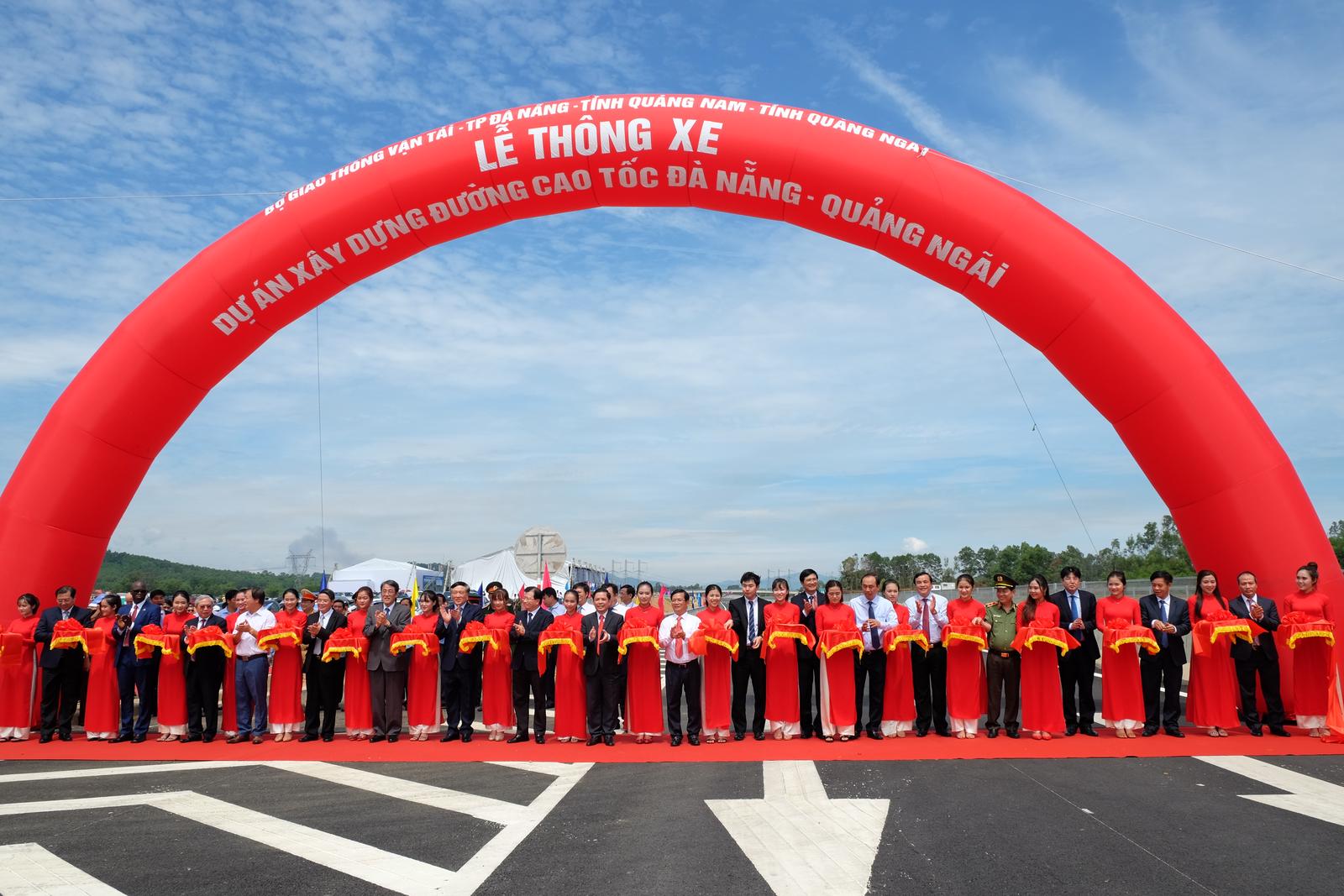 Các đại biểu cắt băng thông xe toàn tuyến cao tốc Đà Nẵng - Quảng Ngãi