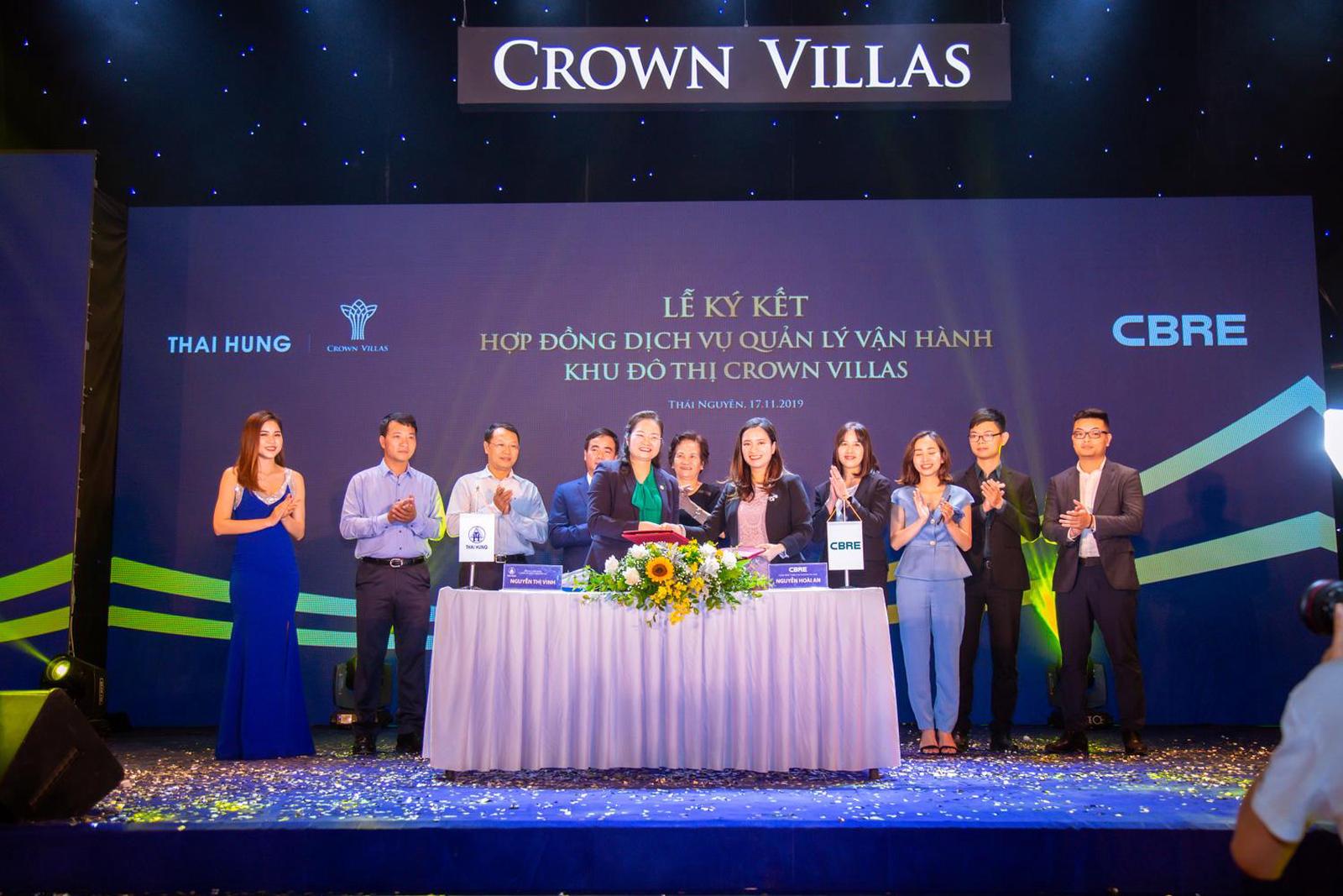 Đánh dấu sự khác biệt và chuyên nghiệp, ngay trong buổi lễ, Công ty cổ phần Thương mại Thái Hưng đã ký kết hợp tác với Công ty TNHH CBRE Việt Nam là đơn vị quản lý vận hành dự án. CBRE được biết đến là đơn vị có kinh nghiệm hơn 100 năm quản lý vận hành các dự án, khu đô thị cao cấp tại hơn 100 quốc gia, vùng lãnh thổ. Việc lựa chọn CBRE đồng hành cùng Crown Villas đã góp phần nâng tầm dự án và đem lại những lợi ích tốt nhất cho cư dân.