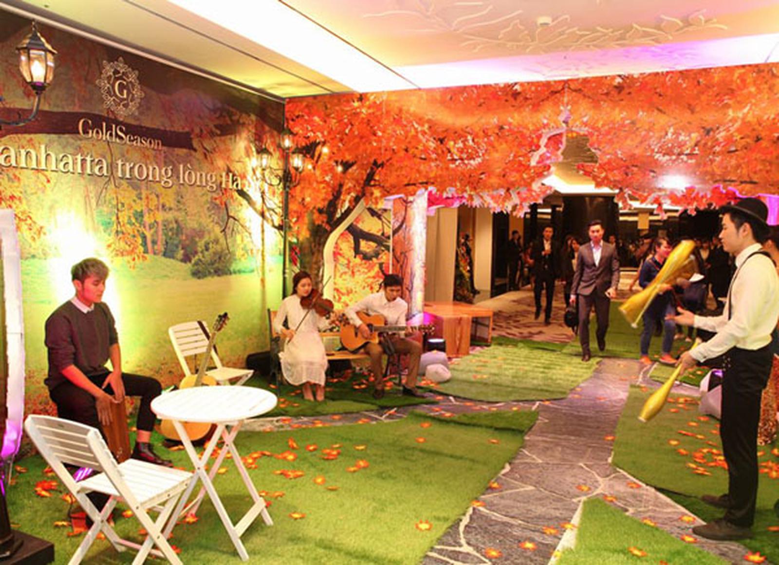 Được phát triển từ ý tưởng “chiếc lá mùa thu” của kiến trúc sư trưởng dự án, Lễ ra mắt Dự án GoldSeason đã tái hiện lại một khung cảnh mùa thu rực rỡ, gây ấn tượng thị giác mạnh mẽ tới người tham dự.