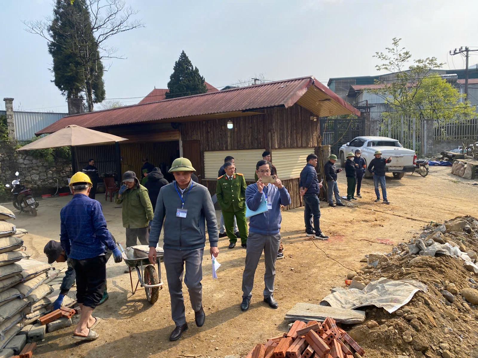 Các lực lượng chức năng thị xã Sa Pa kiểm tra hiện trường xây dựng sai phép của hộ ông Dương Đình Diệm. Ảnh: ND