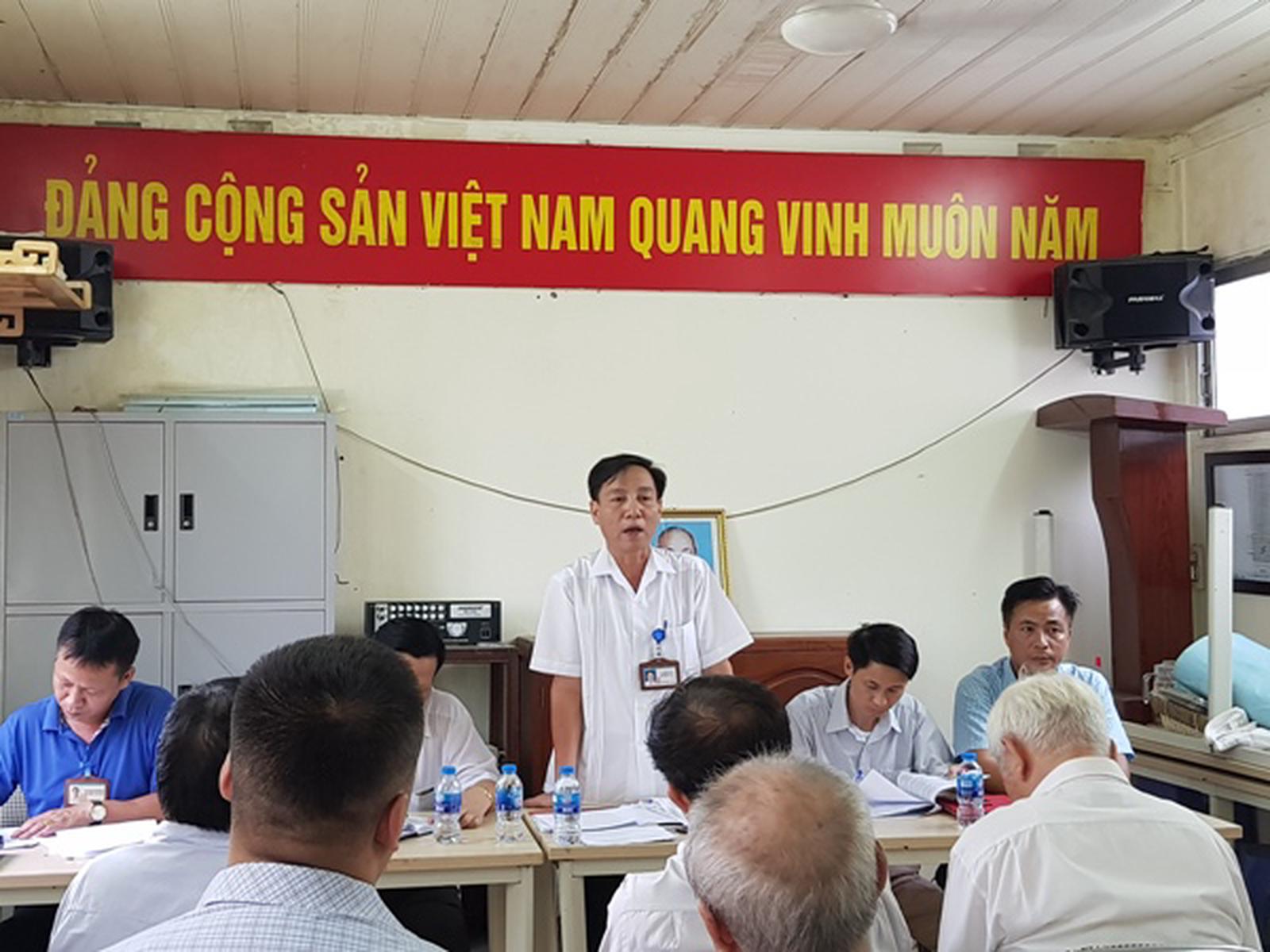 Chủ tịch UBND phường Láng Hạ tuyên truyền vận động cư dân bàn giao mặt bằng tại cuộc họp hôm 19/6. Ảnh: TA