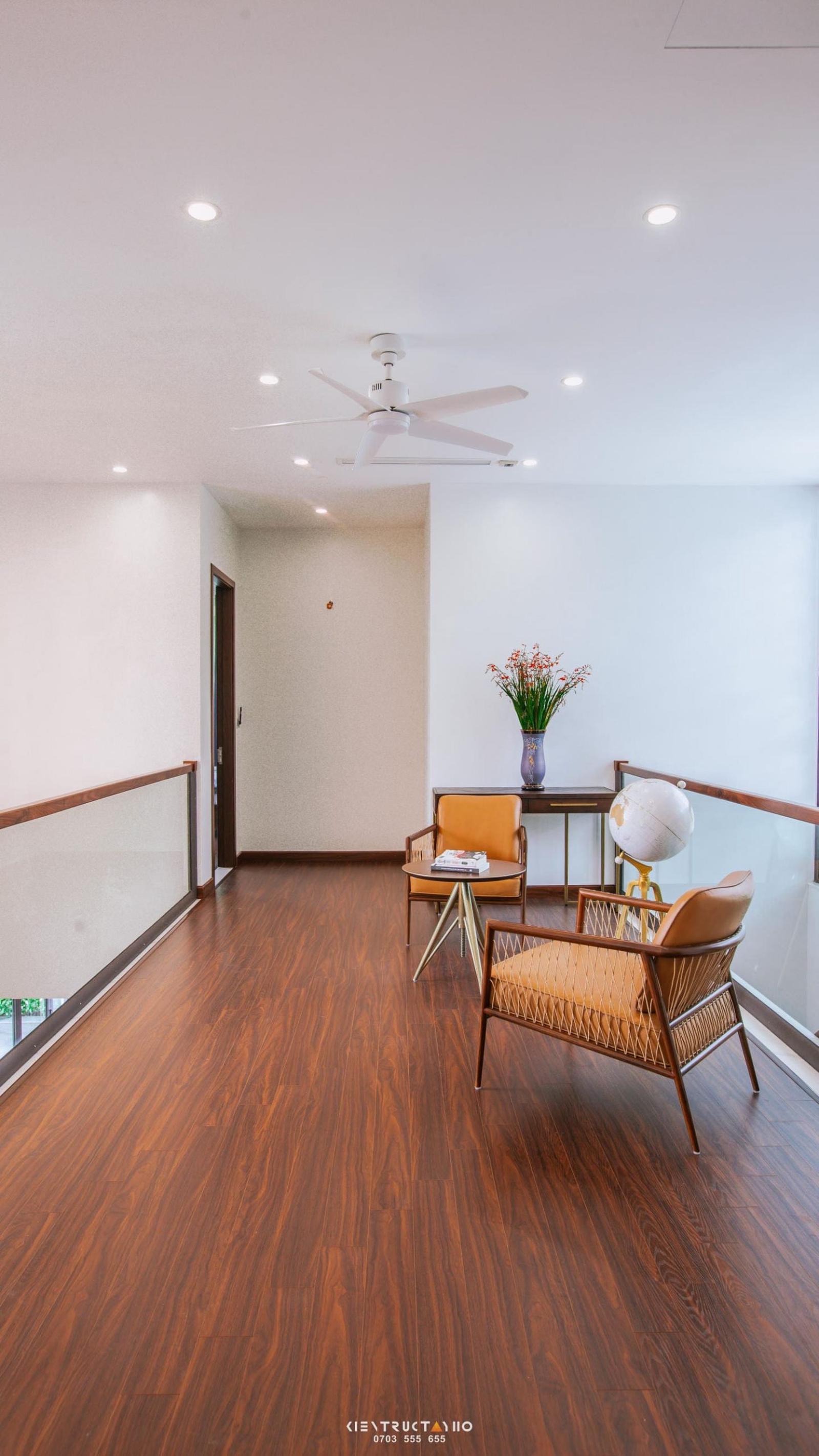 Hành lang tại vị trí thông tầng cũng trở thành góc thưởng trà lý tưởng và thư giãn.