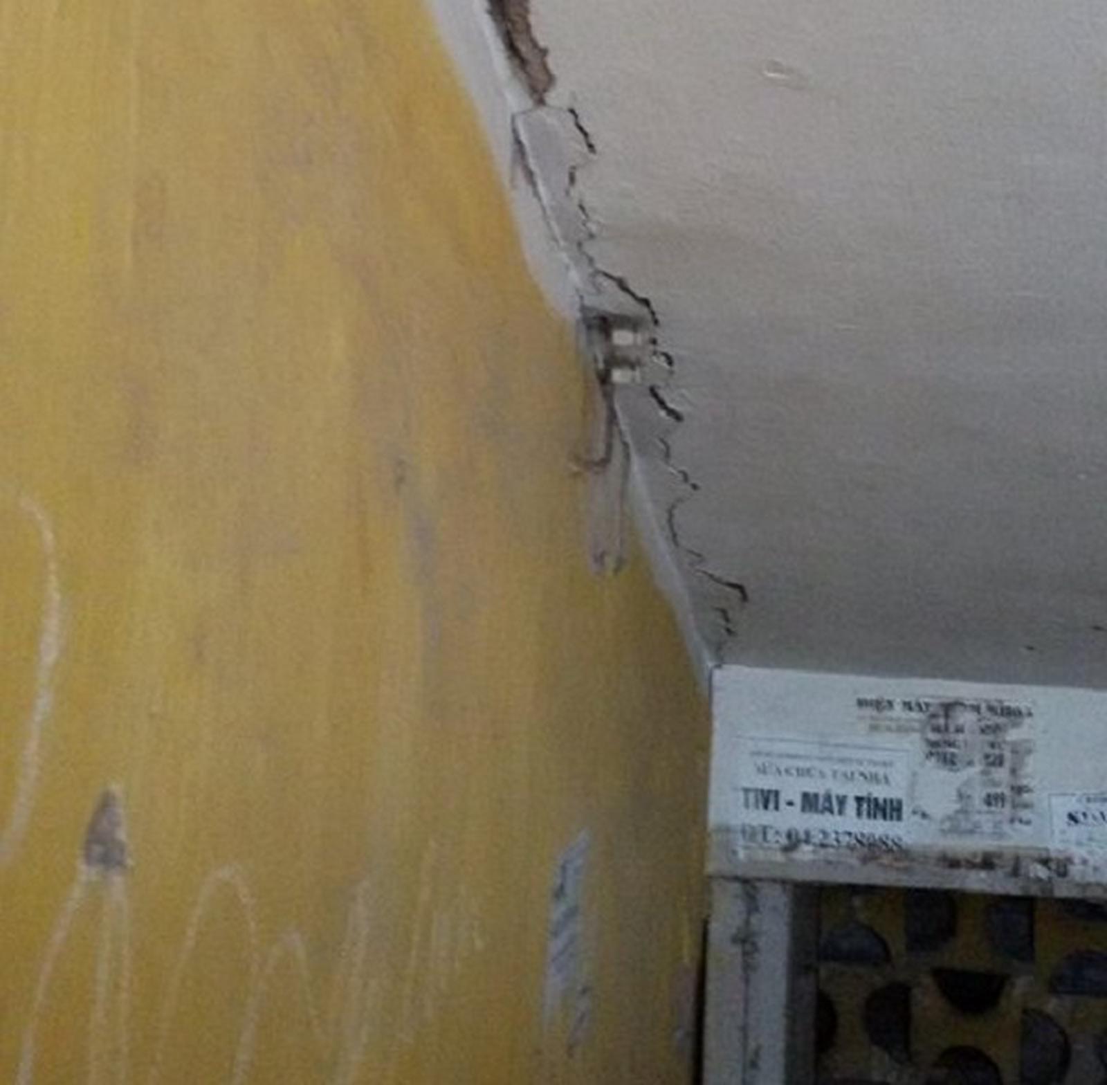 Tương tự, tại khu nhà G6A, phường Thành Công tình trạng 2 đơn nguyên liền kề nhau của khu nhà 5 tầng cũng bị nghiêng về 2 bên. Bằng mắt thường bất cứ ai cũng có thể thấy rõ, khoảng cách 2 đơn nguyên từ tầng 1 chỉ khoảng bằng 1 gang tay, nhưng lên tới tầng 5, 2 khối nhà đã bị xô về 2 bên tạo thành hình chữ V với khoảng cách gần 1m.